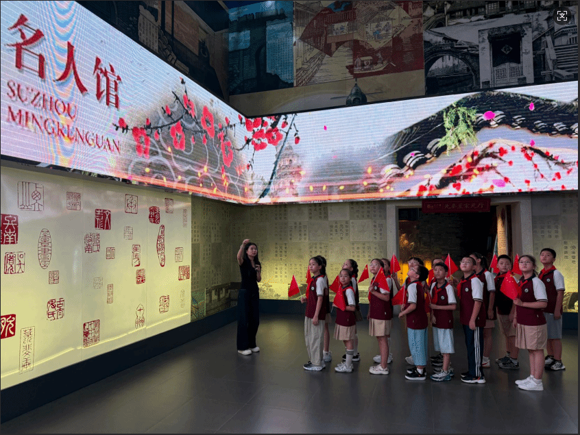 秋日暖阳洒在苏州名人馆的粉墙黛瓦上,一群系着红领巾的小学生兴奋地穿梭于各个展厅。本学期我校德育处开展“在苏州 爱苏州”主题研学系列活动,让同学们走出课堂,与苏州历史上的杰出名人来了一场跨越时空的对话。