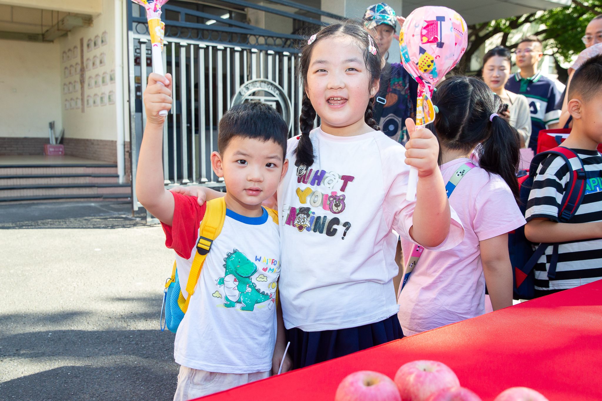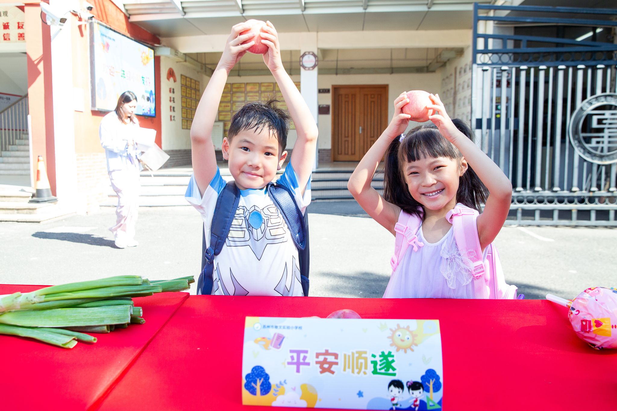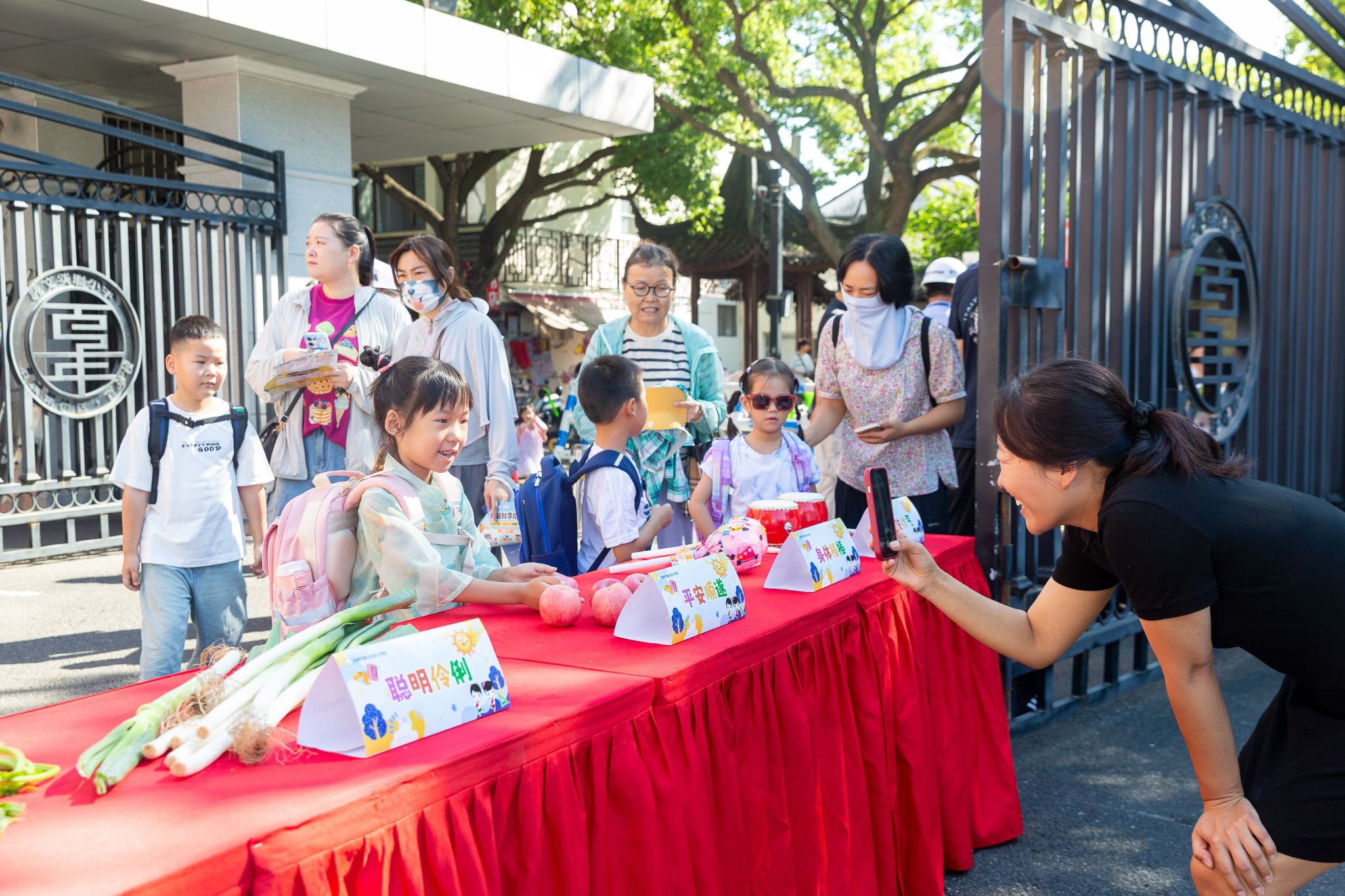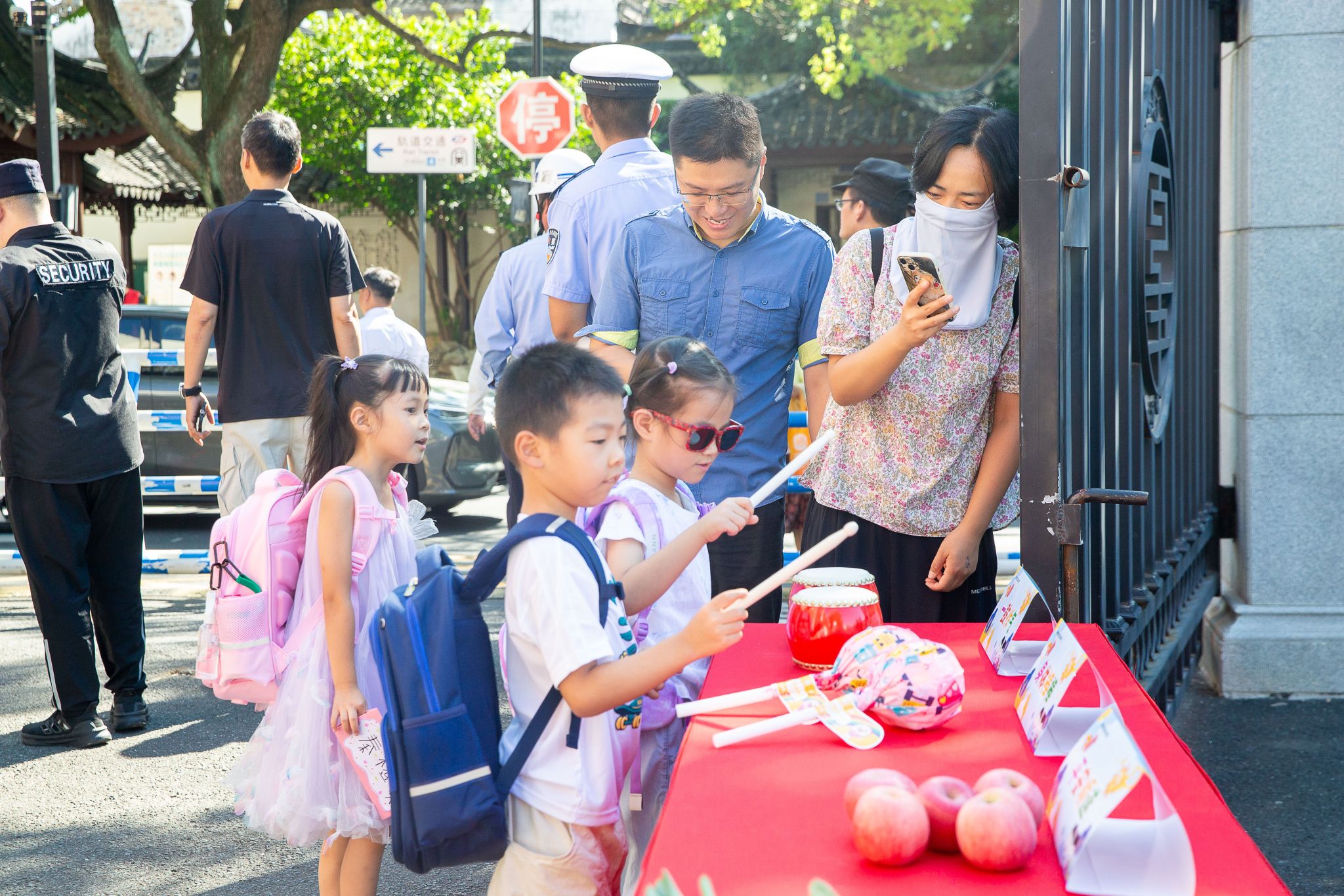 孩子们好奇又兴奋地伸手触摸,在欢声笑语中感受传统寓意带来的别样趣味,为开学增添了浓浓的喜庆氛围。