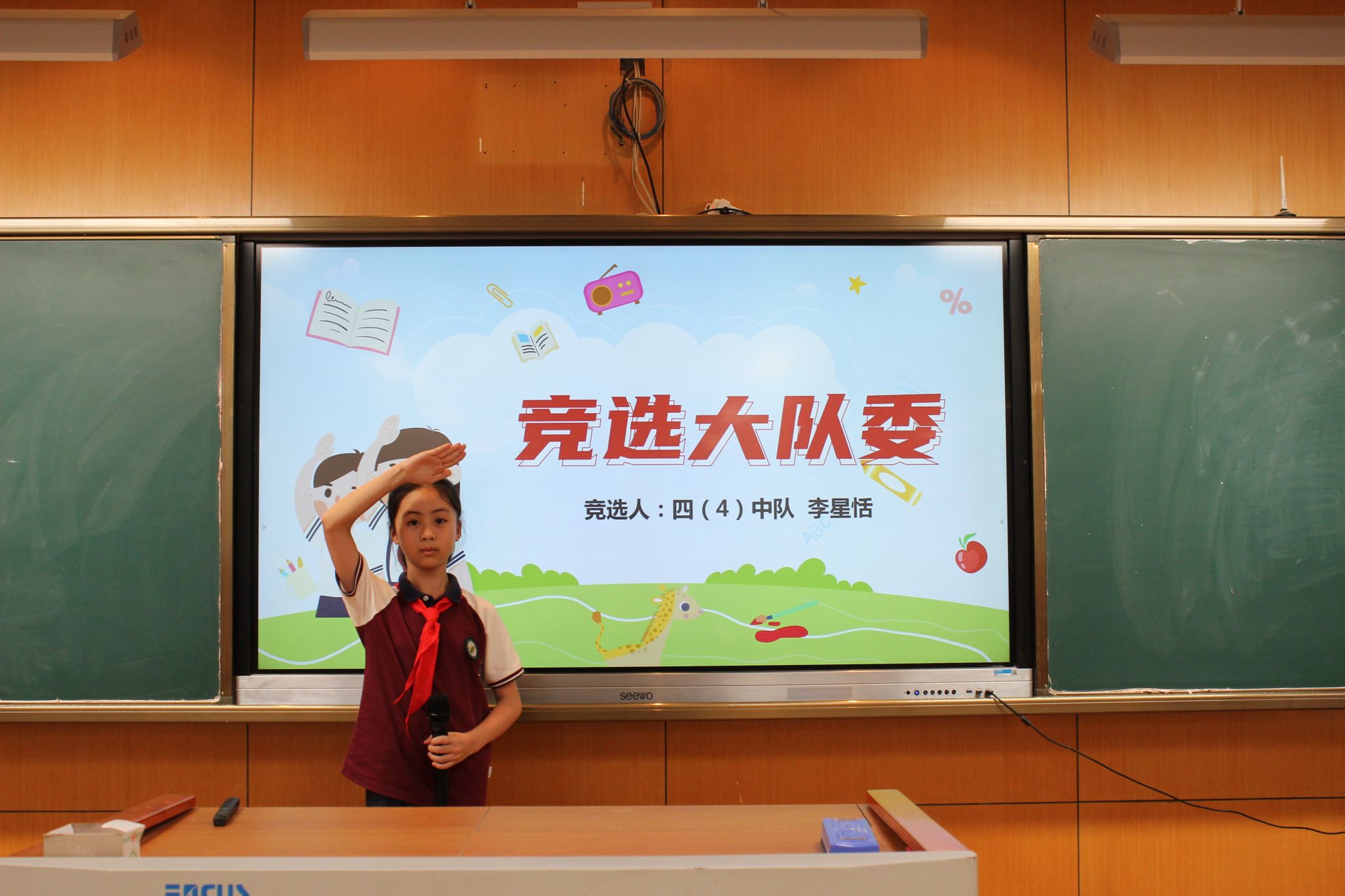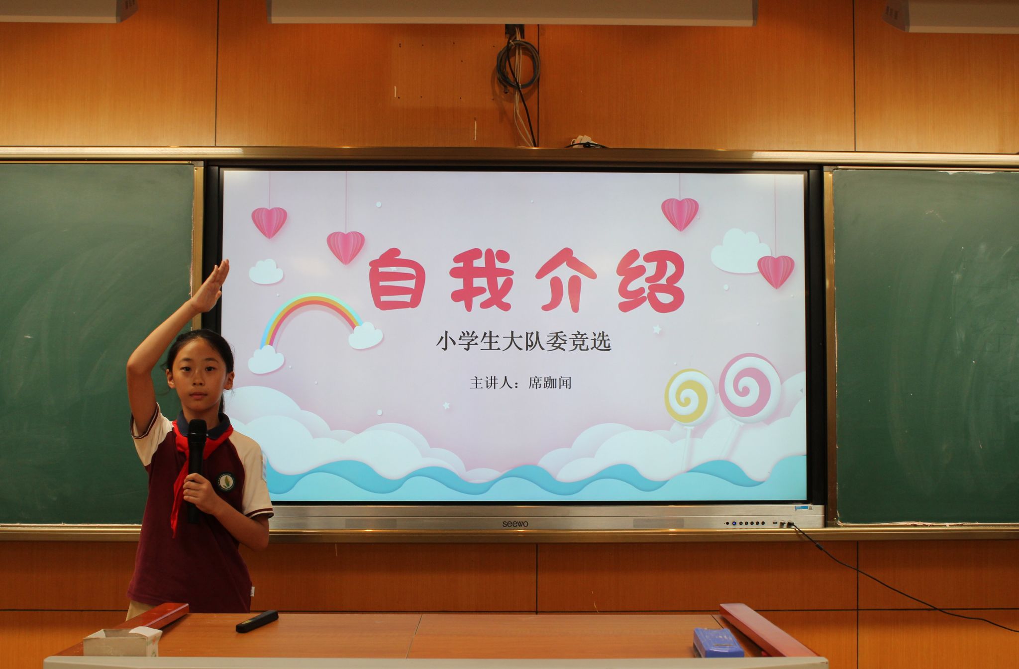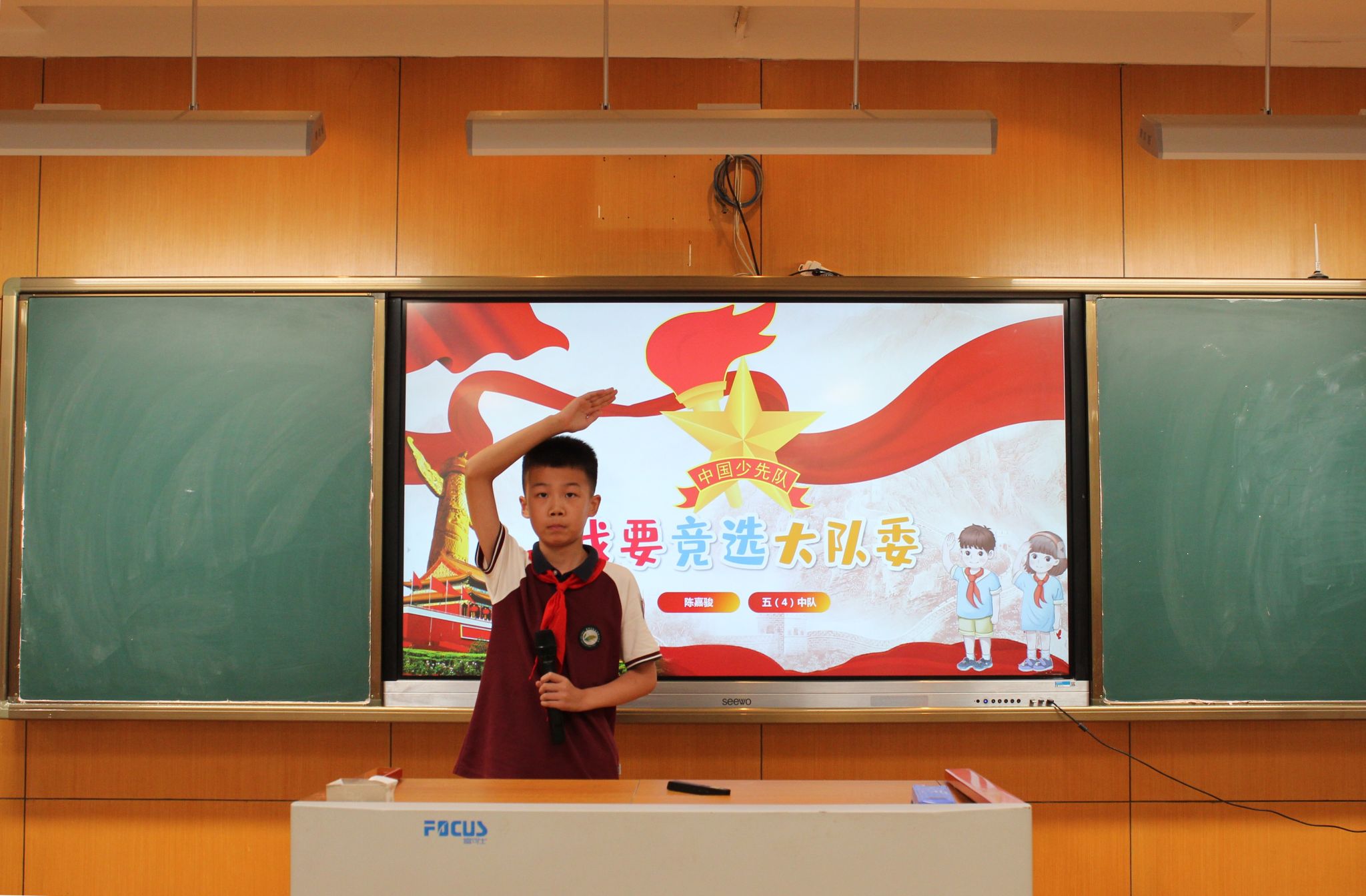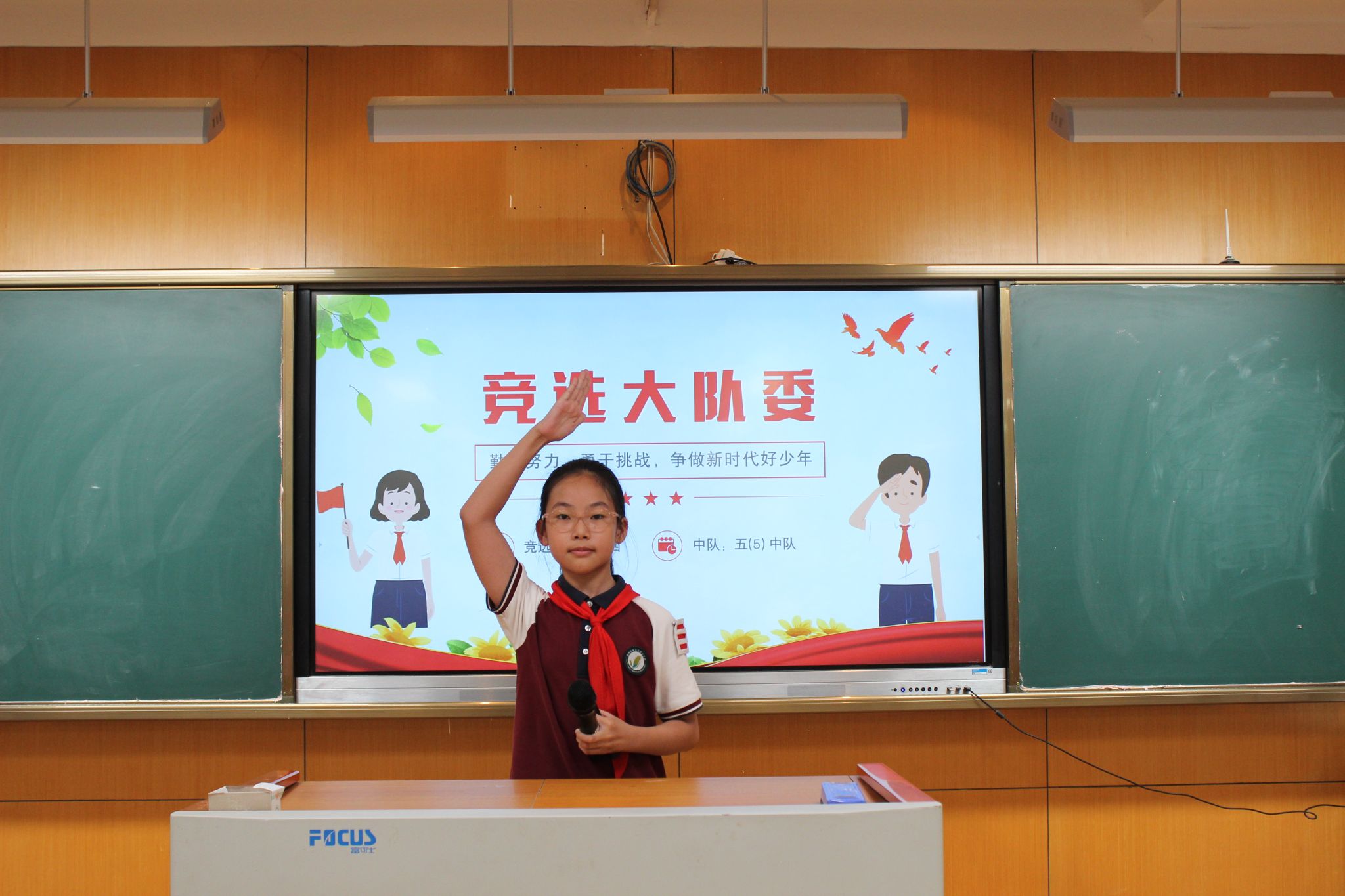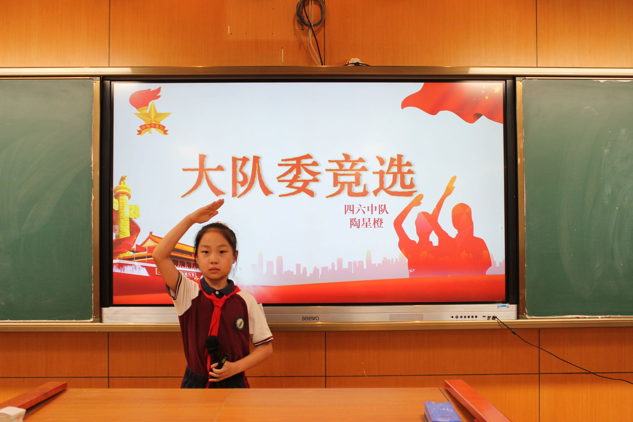 紧接着,大队委候选人发表了选举演讲,表达了自己为学校、为同学服务的热情与决心,展现了自己担当榜样的能力。