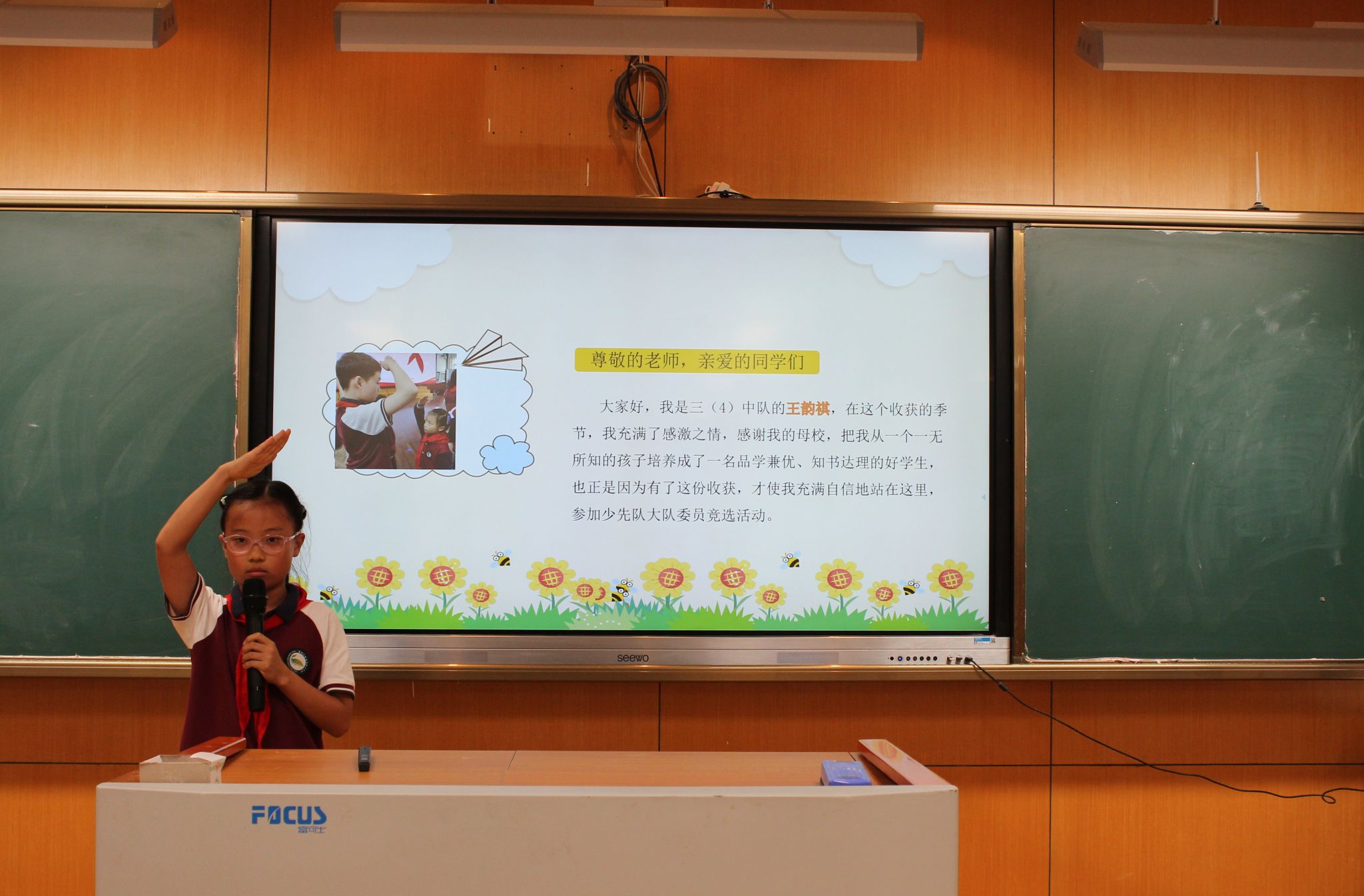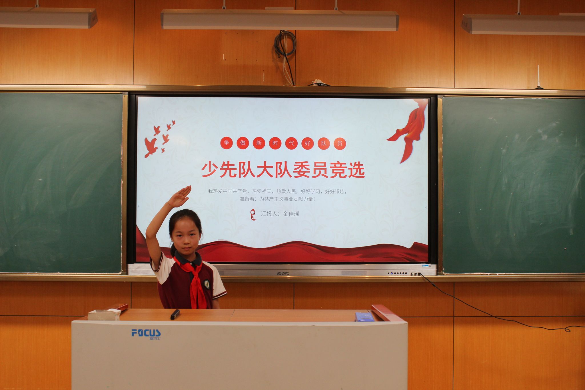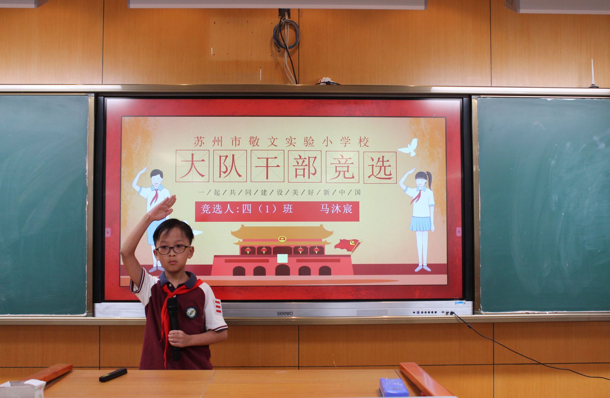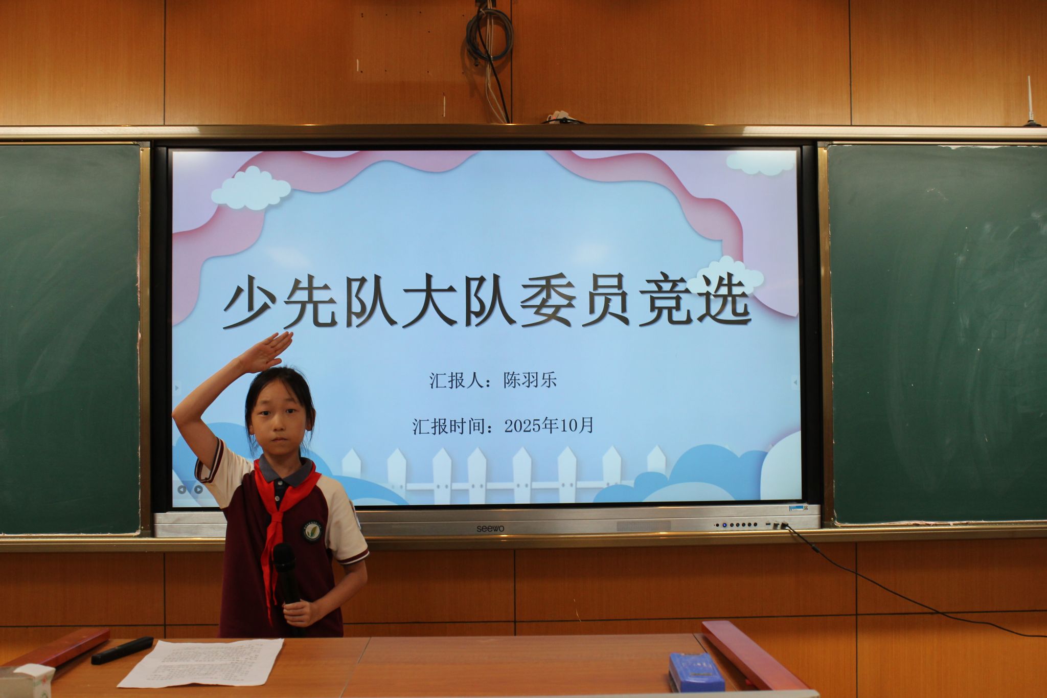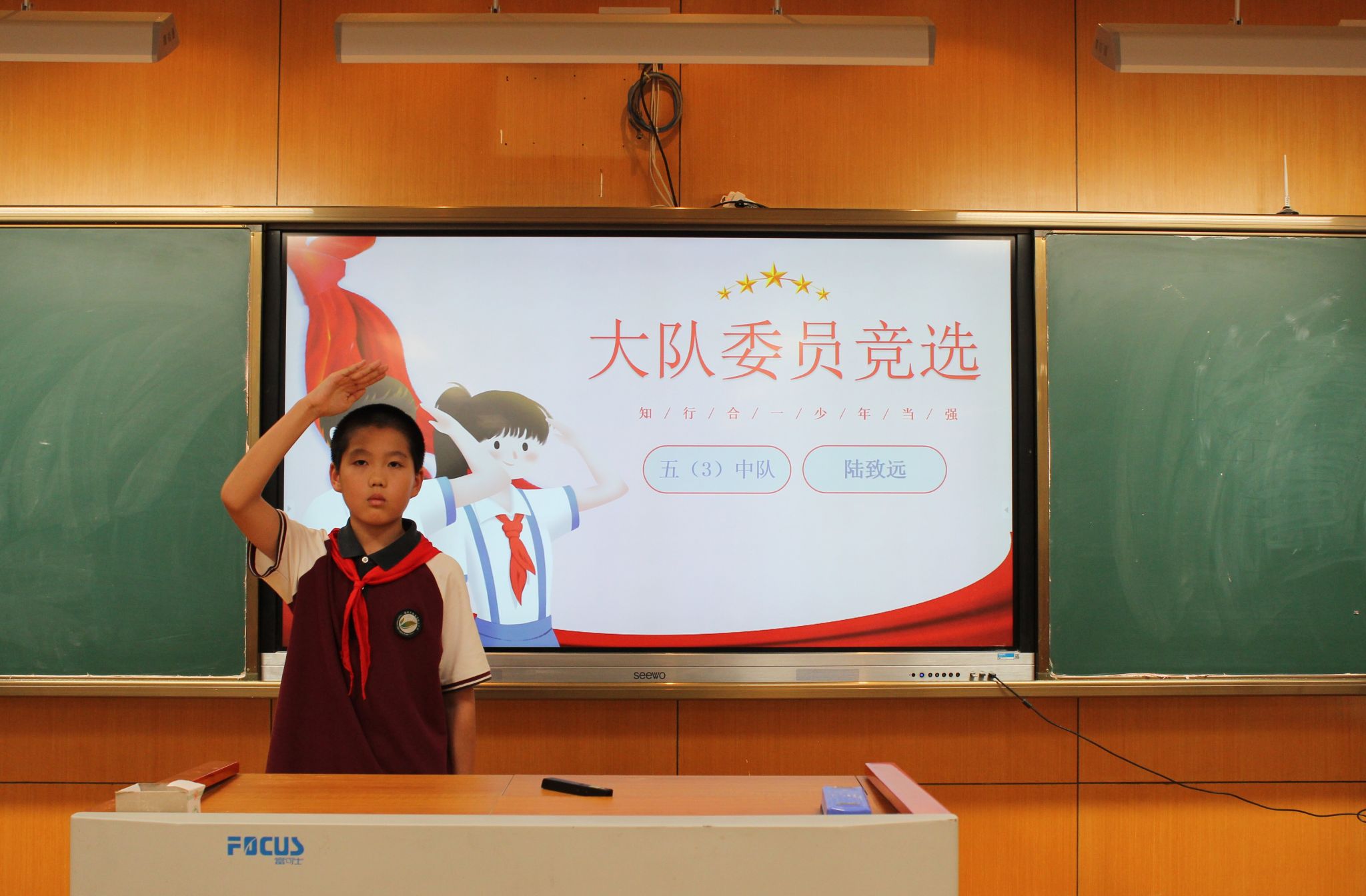 紧接着,大队委候选人发表了选举演讲,表达了自己为学校、为同学服务的热情与决心,展现了自己担当榜样的能力。