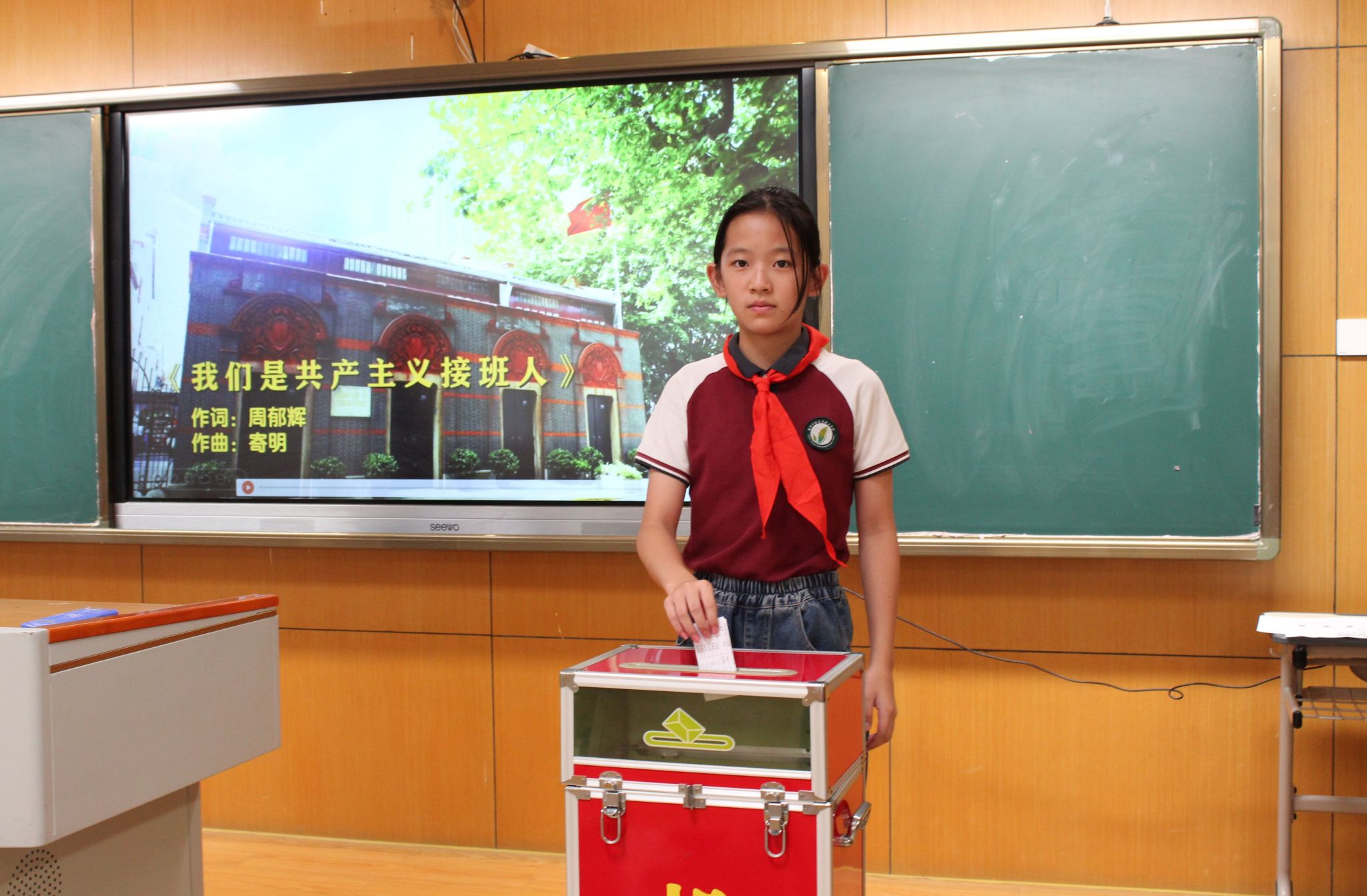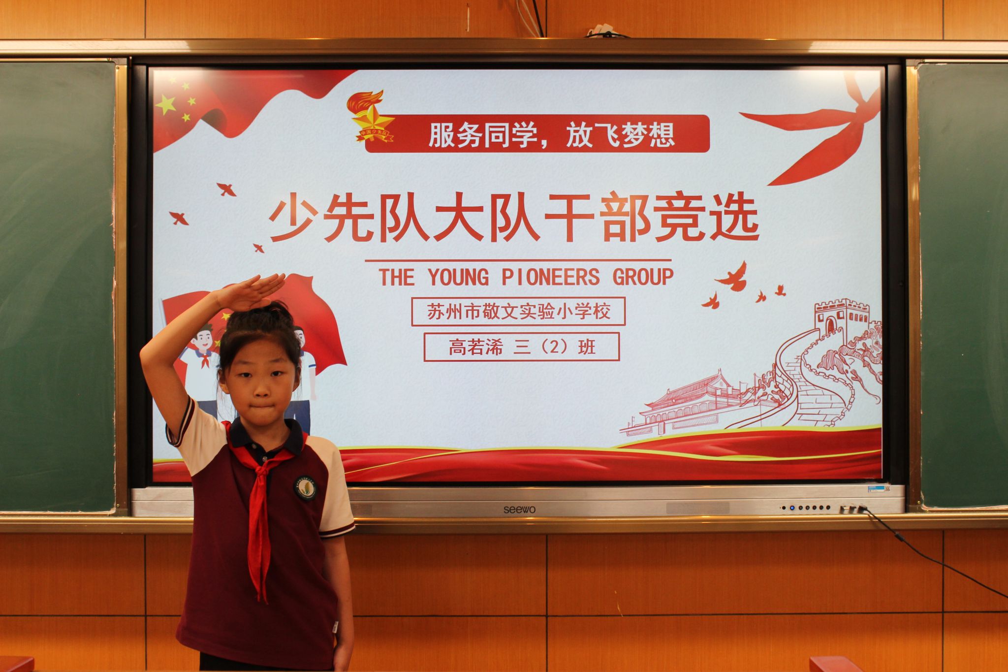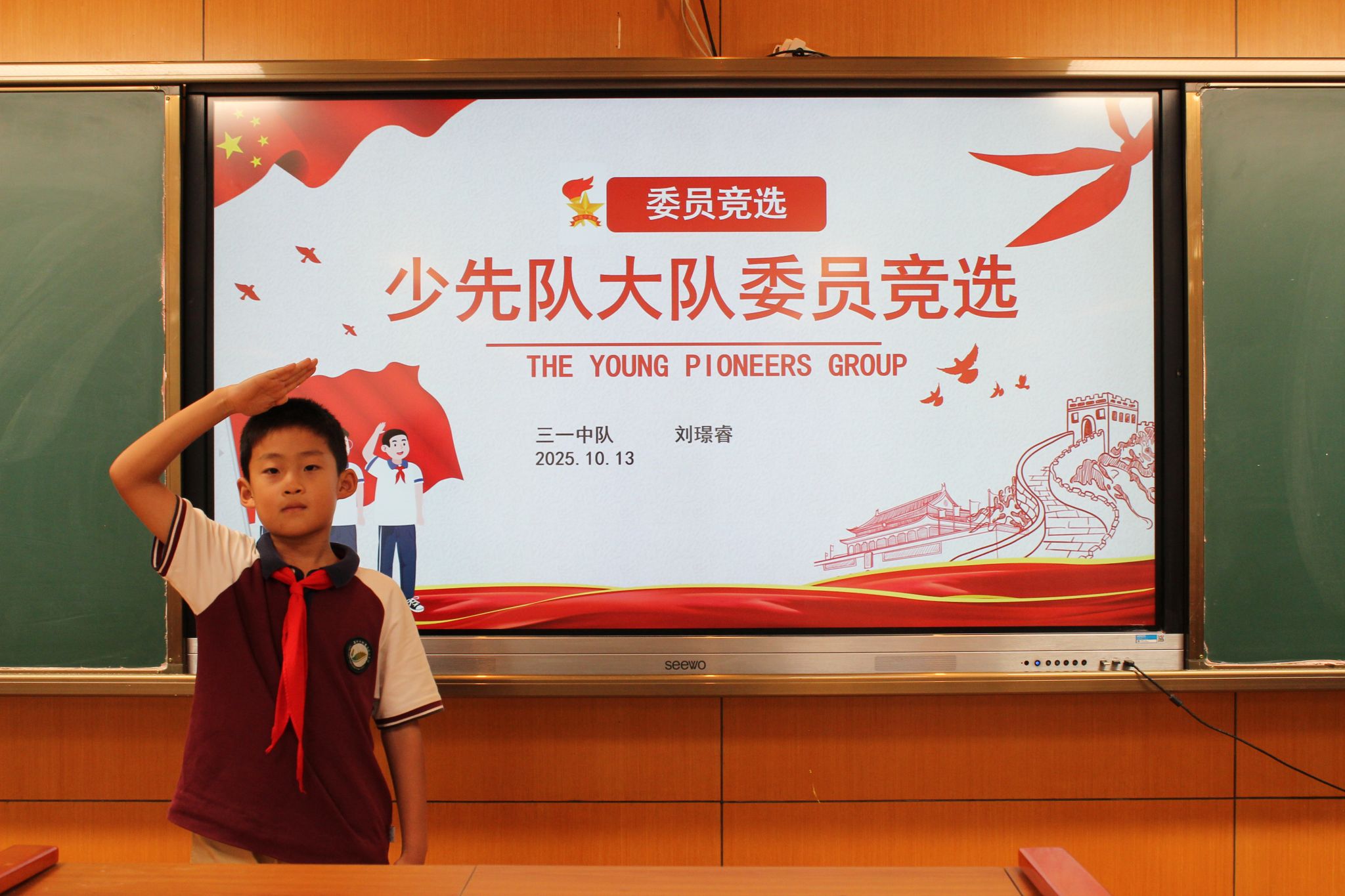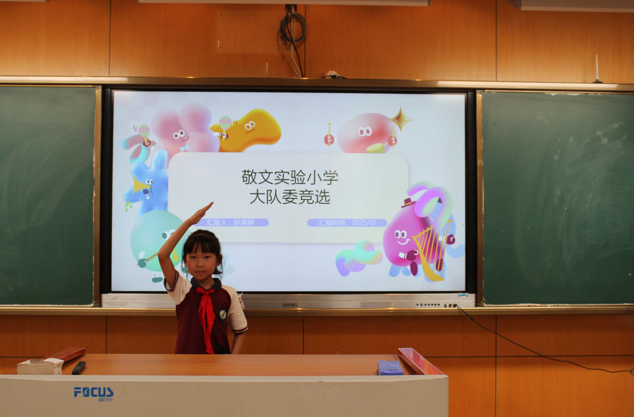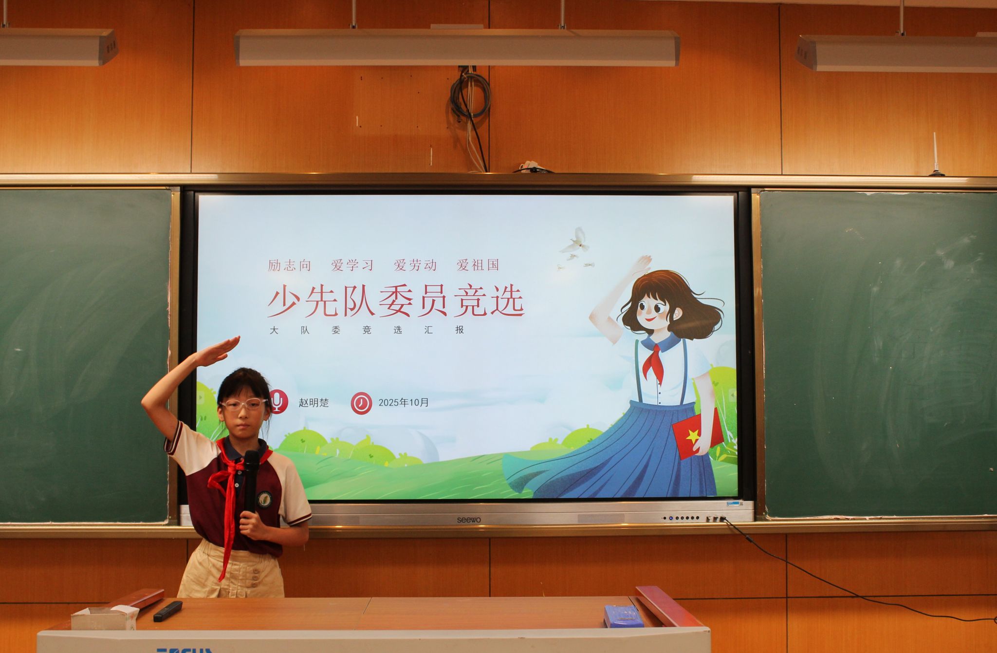 紧接着,大队委候选人发表了选举演讲,表达了自己为学校、为同学服务的热情与决心,展现了自己担当榜样的能力。