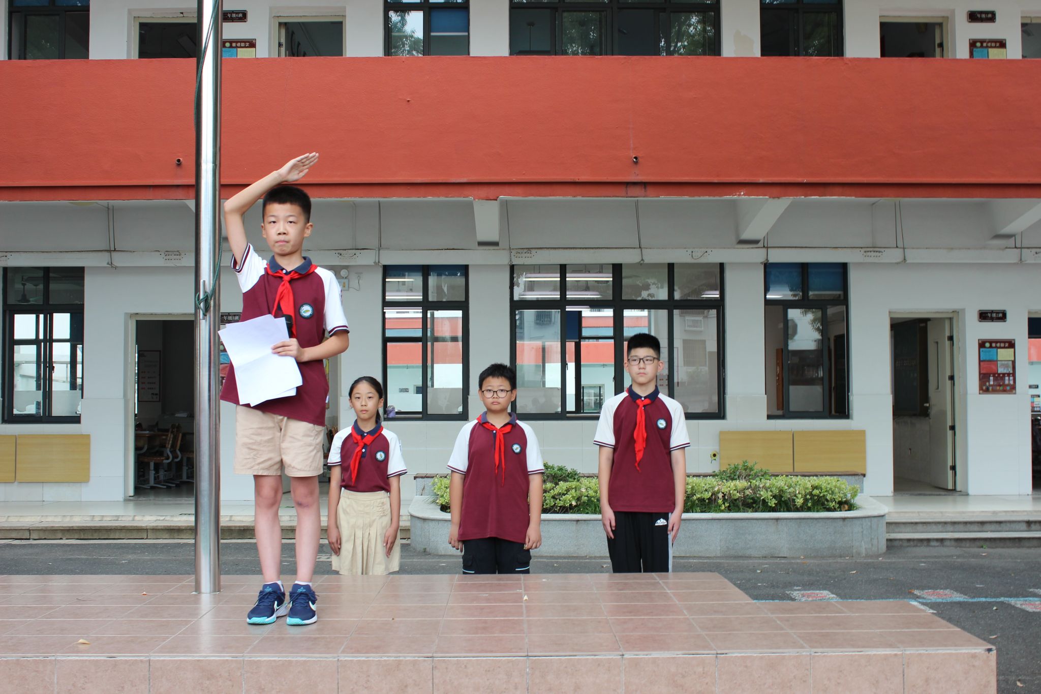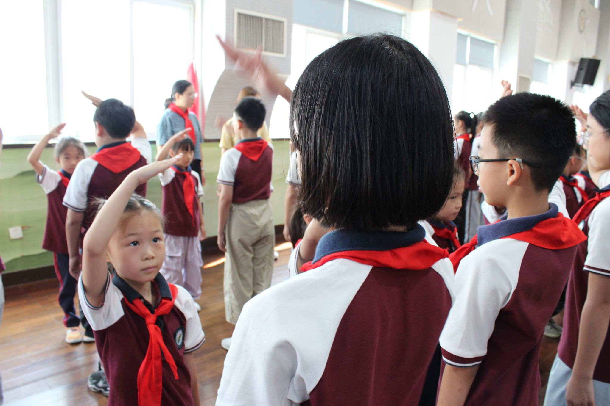 有一抹红色,永不褪色,那是五星红旗闪耀的颜色。队员们在红旗下实现新的突破,宣告自我成长,争做党的好孩子!