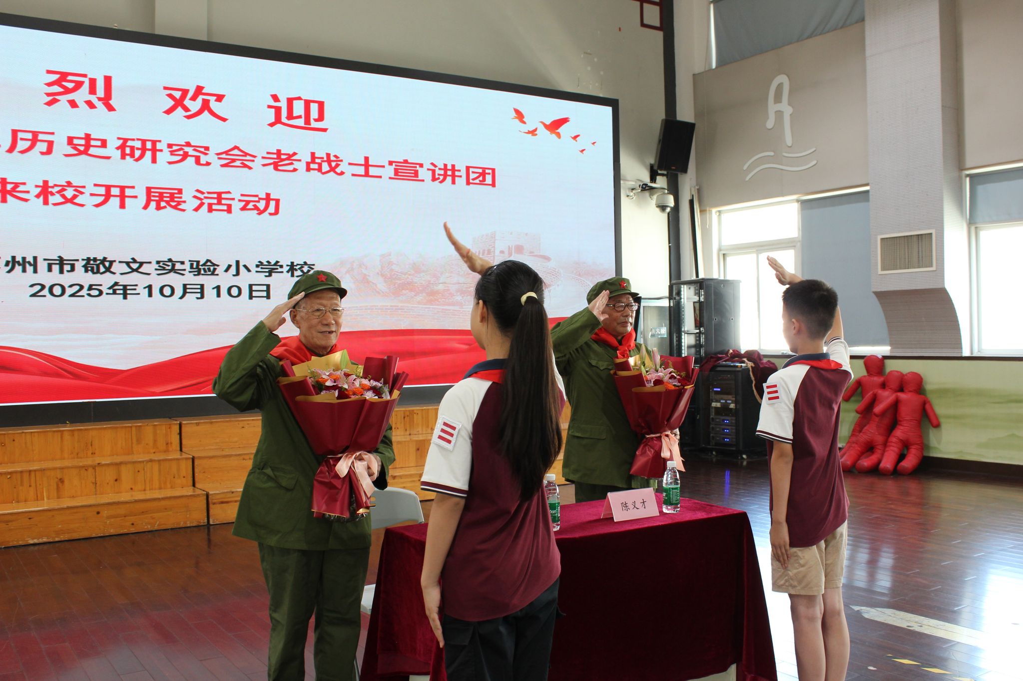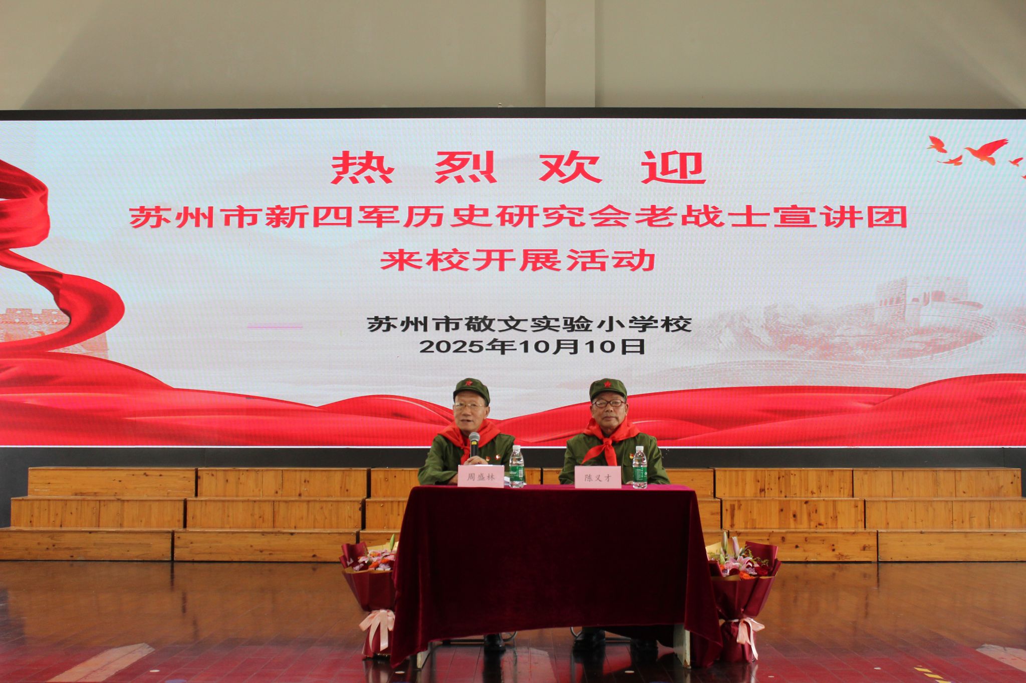 为深入学习革命历史,传承红色基因,弘扬爱国主义精神,红色十月,苏州市新四军历史研究会老战士宣讲团走进敬文实验小学校,为学生展开一幅鲜活的红色画卷。