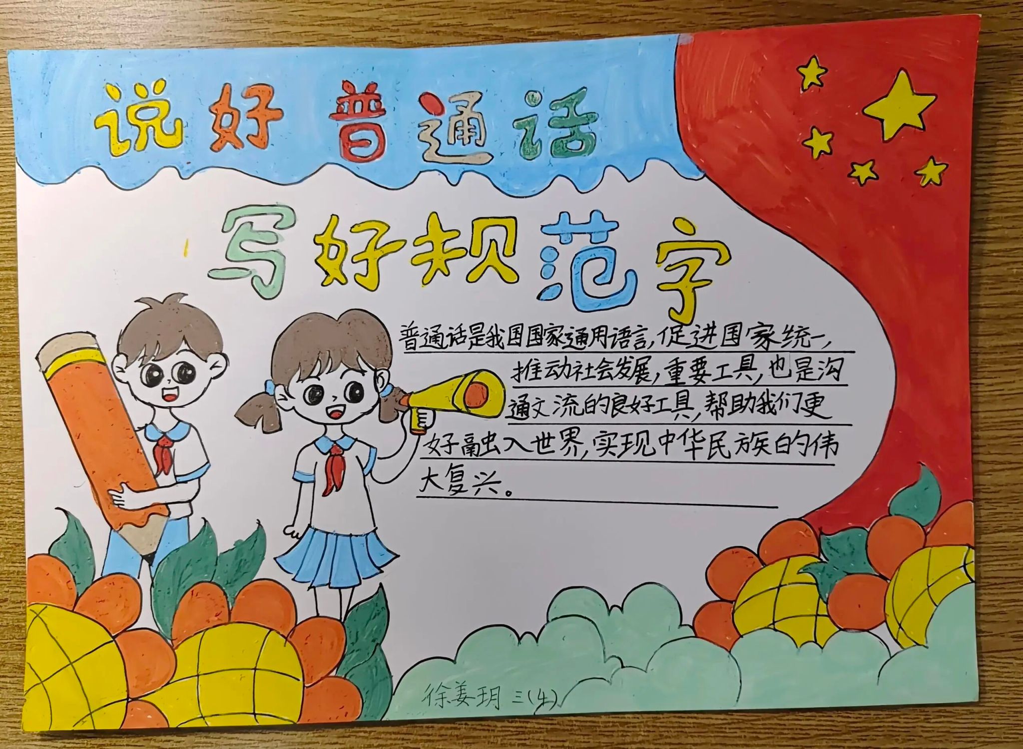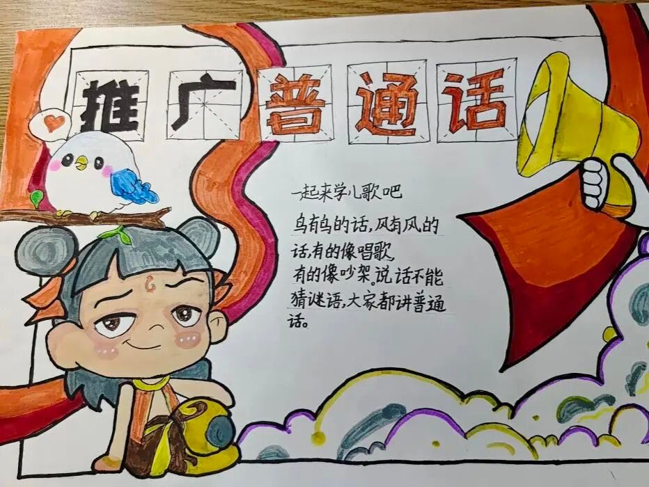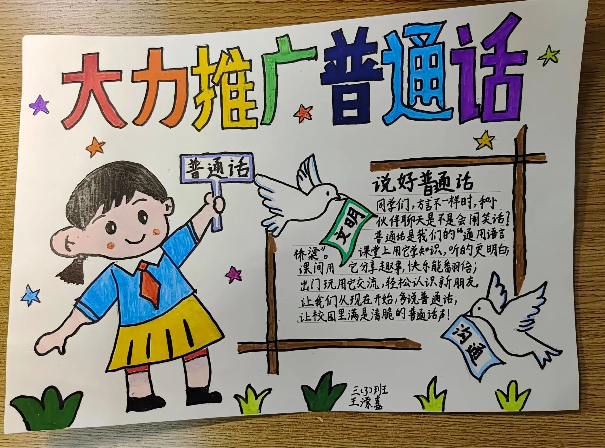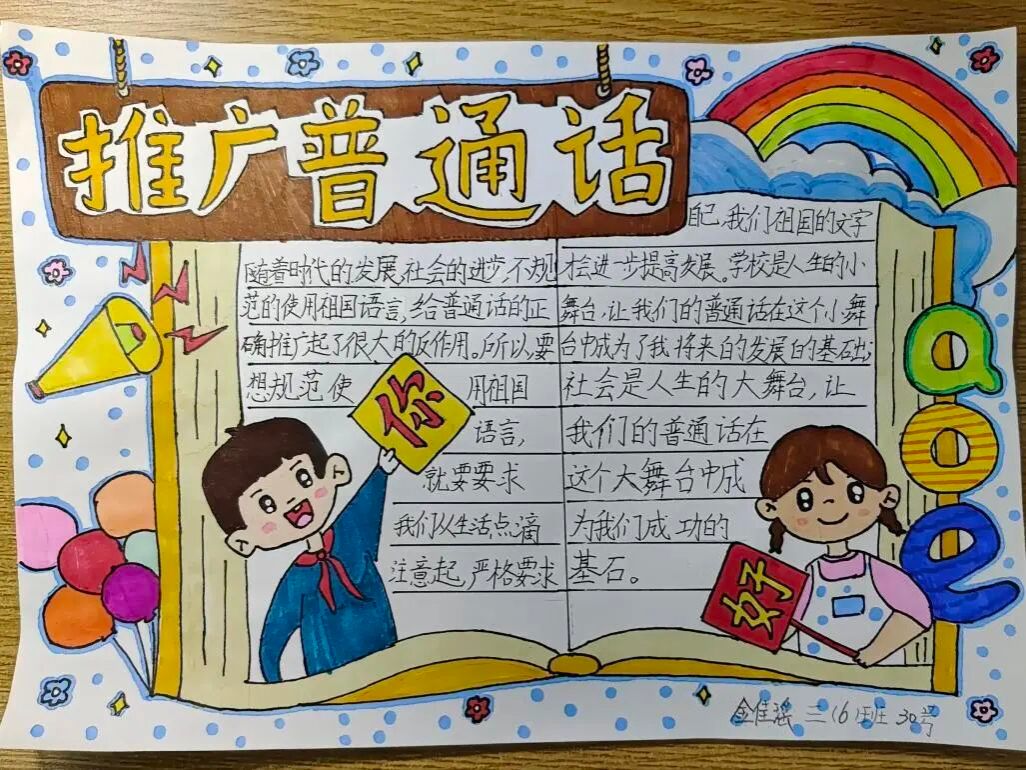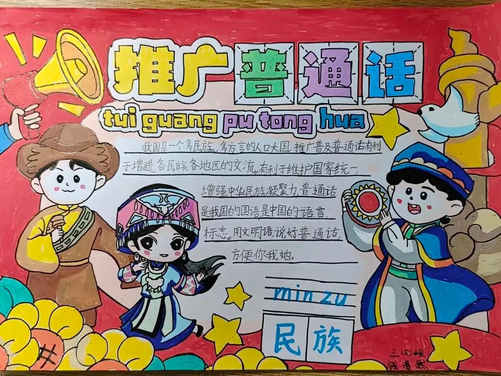 校园里,一场以推广普通话为主题的创意风暴正悄然掀起,“推普小报”便是这风暴中绽放的绚丽花朵。三年级的孩子们化身语言小使者,用手中的画笔和灵动的文字,精心绘制出一幅幅精彩纷呈的小报。