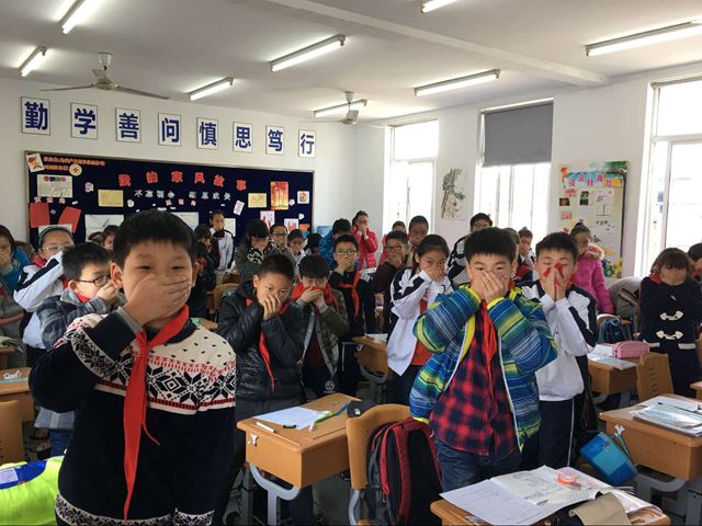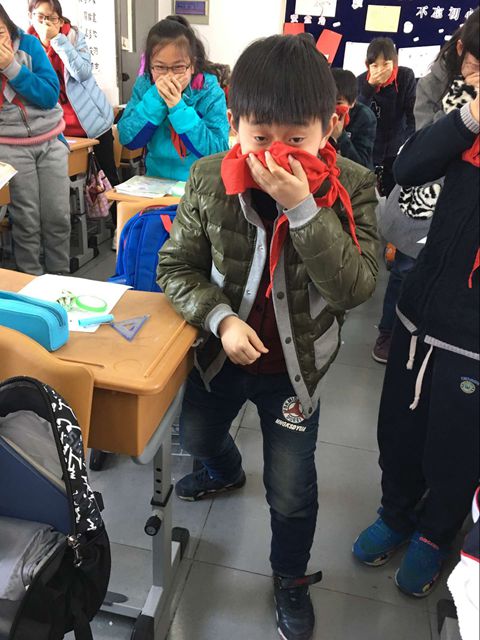 随着警报声的拉响,教师迅速引导楼内学生快速疏散,带领学生弯着腰、猫着步,用毛巾等捂住口鼻,沿着学校指定的疏散通道快速前进,有序撤离到学校操场安全地带,随即各班清点人数,并向上汇报,全校师生全部安全疏散完毕,整个逃生过程迅速而有序。