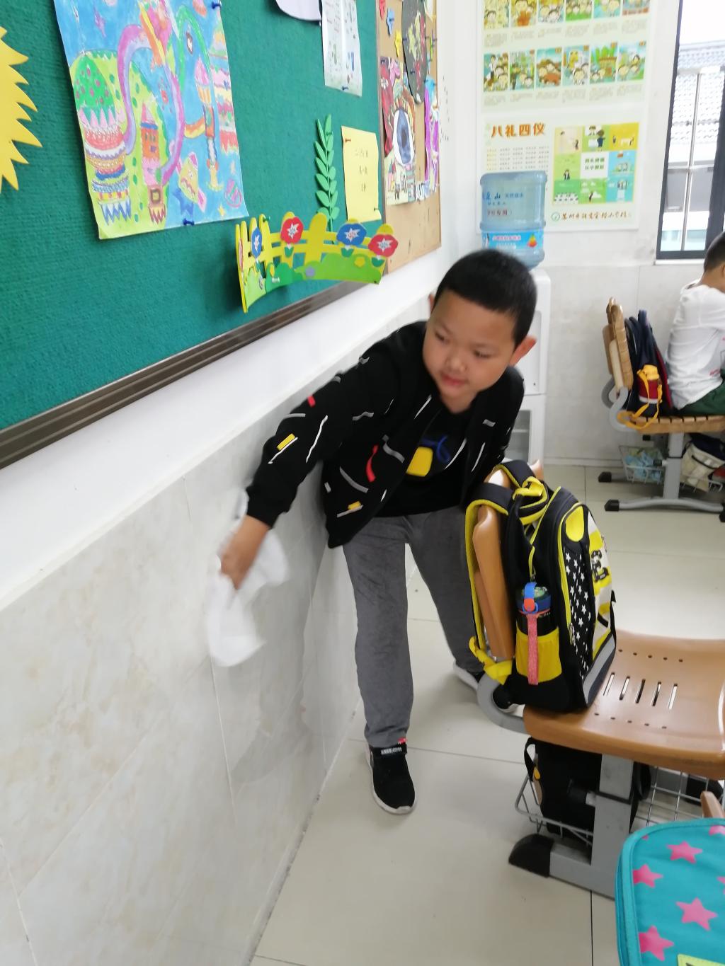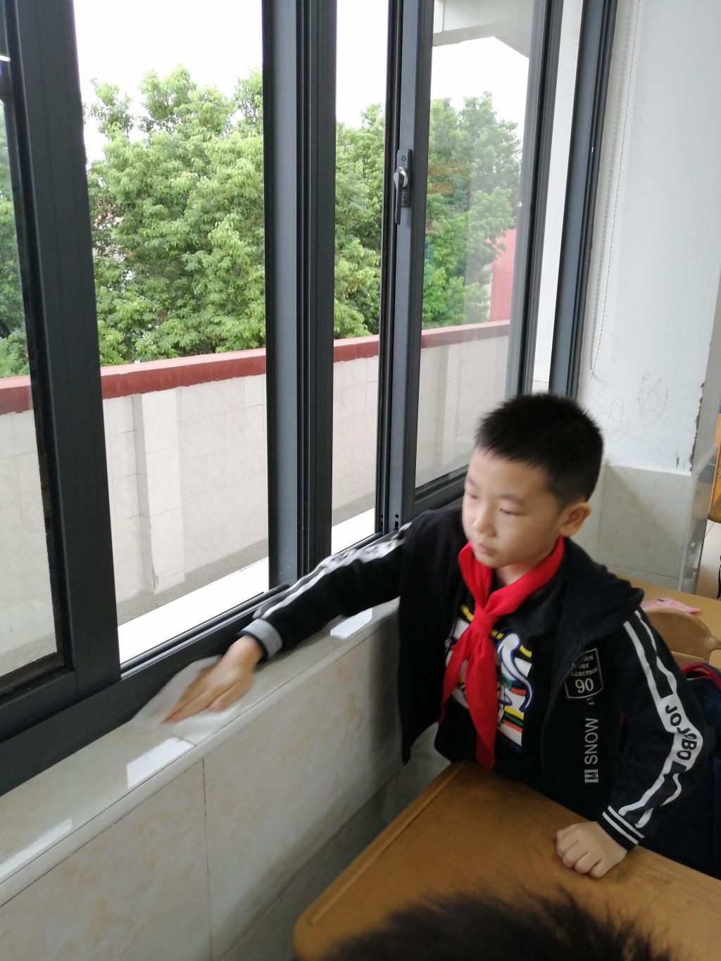 大扫除开始了。看!同学们一个个干劲冲天。老师给我们分配好了工作,你去摆桌椅,她去扫地,我去擦窗户……瞬间,全班都热闹得像炸开了锅,大家都忙得不亦乐乎。只见班长拿着扫把弯着腰,把教室的每个角落都打扫得干干净净。额角上渗出了汗珠,也顾不上擦一把。再看看其他的同学,干得热火朝天。大扫除结束了,同学们看着焕然一新的教室,心里愉快极了。大家你看看我,我看看你,个个都成了“小花脸”,我们笑得腰都直不起来。最后懂得了:只有劳动,才有收获。