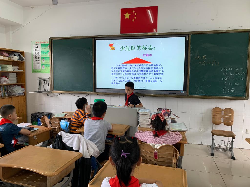 三年级开始,每周的课程表上多了一节班队课。对于这个新鲜的课程,我们的中队干部,勇于承担责任,纷纷力争上台主持。照片上的男生,是我们班级的中队干部,常哲轩,他主持的班队会的主题为:我为红领巾添光彩。介绍了少先队的历史以及一些知识,让学生懂得了不少知识。学生倾听认真,知识竞赛有趣,学生参与热情很高。同时也让我们的中队干部得到了锻炼。