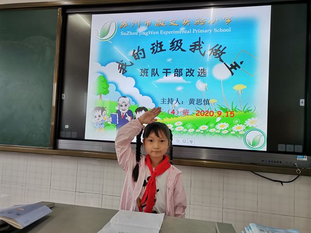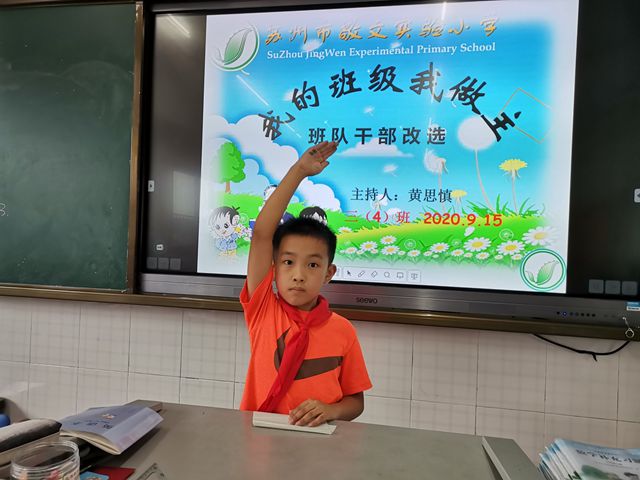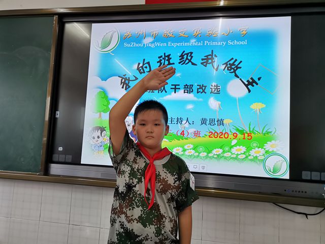 随着主题班会“我的班级我做主”拉开序幕,一场激烈的竞争——班队干部改选就开始了!参加竞选的少先队员们,做好了充分的准备,认真撰写了竞选发言稿,还上台大胆、响亮地表达了自己心中的愿望,表明了自己的决心!全体少先队员通过投票方式,最终选出了“中队长、副中队长、学习委员、宣传委员、文娱委员、劳动委员”等8名中队干部和8名小队干部。相信在这些班干部的带领下,班级面貌会焕然一新,会有更好的发展,大家加油!