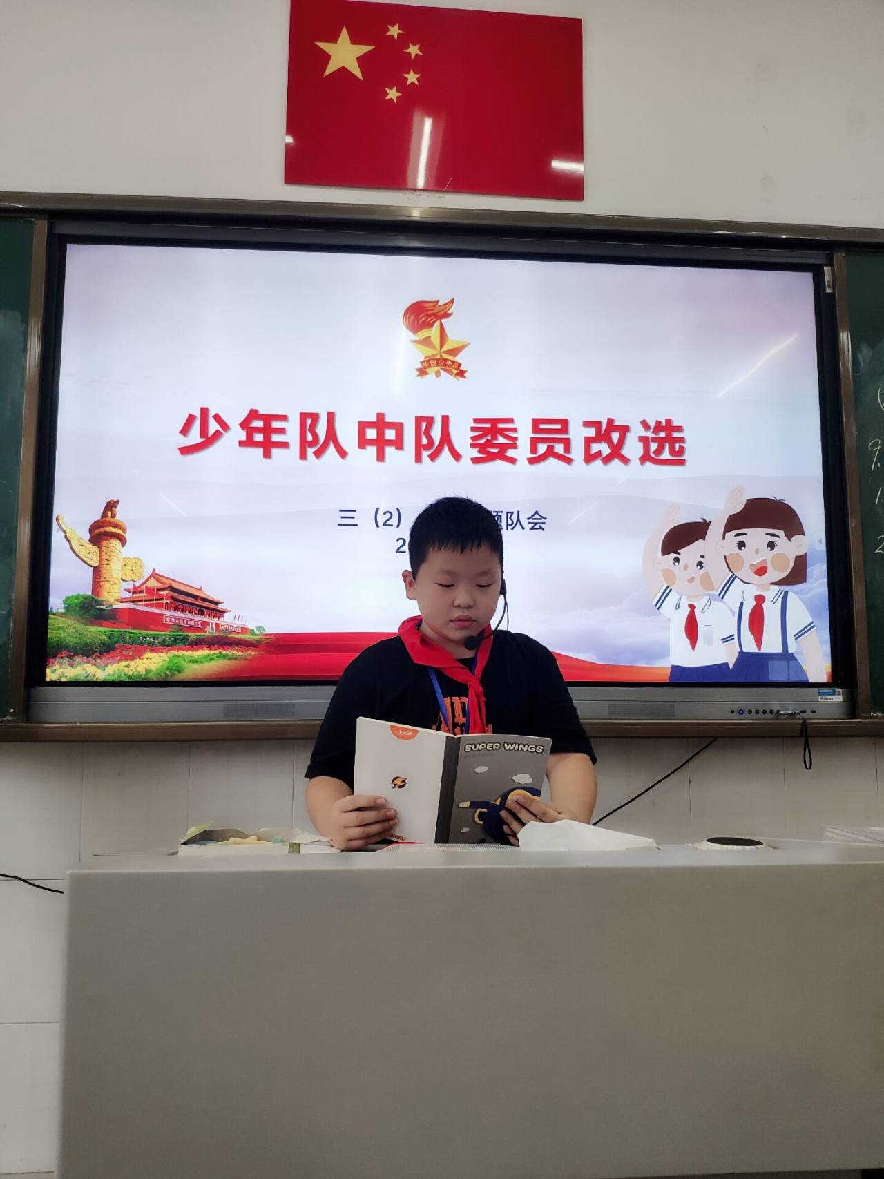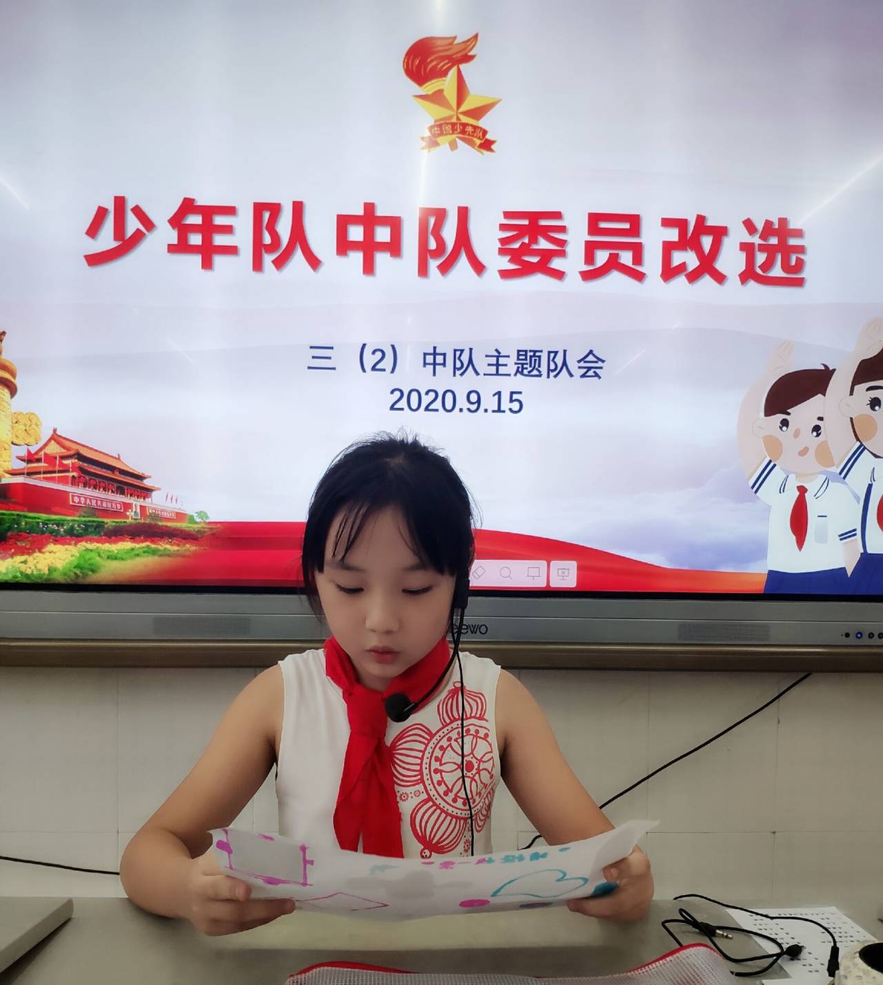 9月15日,三(2)中队进行了中队委员的改选活动,有16位同学勇敢地站上讲台,把自己的竞选稿向全班同学进行宣讲,表达了自己服务班级的意愿和决心。看得出,他们又兴奋又紧张。每位竞选队员上台前,都会有台下同学的鼓励和加油声。
