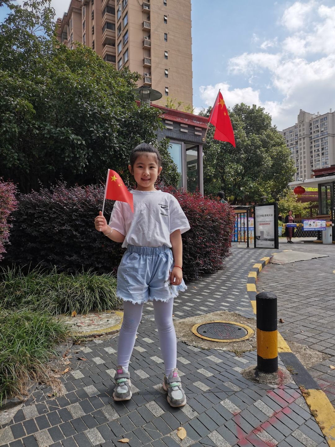 国庆假期期间,我们班举行“我与国旗合个影”活动,每个小朋友积极上传与国旗的合影,部分小朋友手拿国旗,还有一部分与街道的大国旗合影,还有个别小朋友在脸上还贴了国旗的小贴纸,形式多种多样。整个班级里弥漫着浓浓的国庆节日氛围,小朋友们也可以切身感受到扑面而来的爱国气息。这次活动由家长带着孩子寻找国旗,也促进了亲子关系,共同寻找也锻炼了孩子们热爱生活,观察生活的能力。节后,还有一部分小朋友将自己拍的照片打印出来贴在了班级的黑板报上,精彩纷呈!