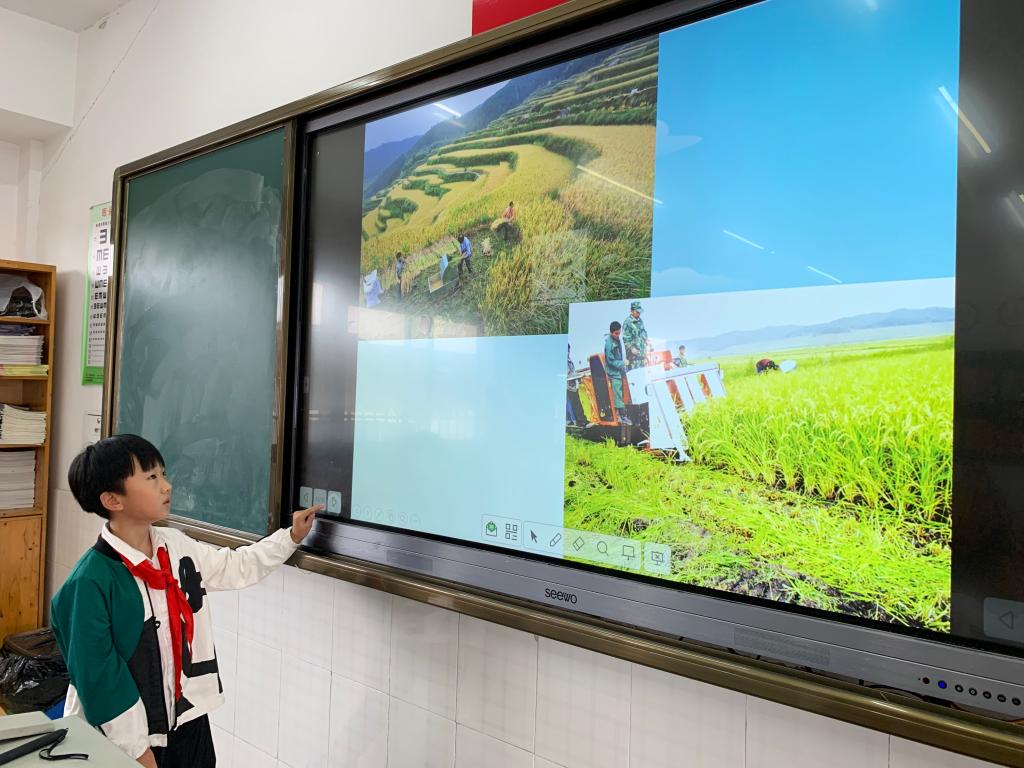 10月20日周二,又是班队课的日子。本周的班队课的小主持人是班级的学习委员孔鑫浩小朋友。围绕“小小丰收节”这一主题,带领同学们学习稻田守望者,中国杂交水稻之父袁隆平院士、带领农民致富的赵亚夫爷爷等先锋故事,了解一两种农作物的生长过程,分享一个节约小妙招等,在队员中营造拒绝浪费的价值导向。作为班委,孔鑫浩的主持非常棒,既向同学们讲授知识,又用考题来让大家巩固所学知识,同学们受益匪浅。