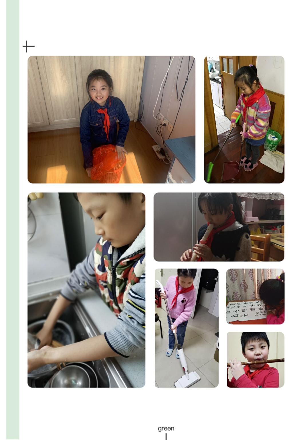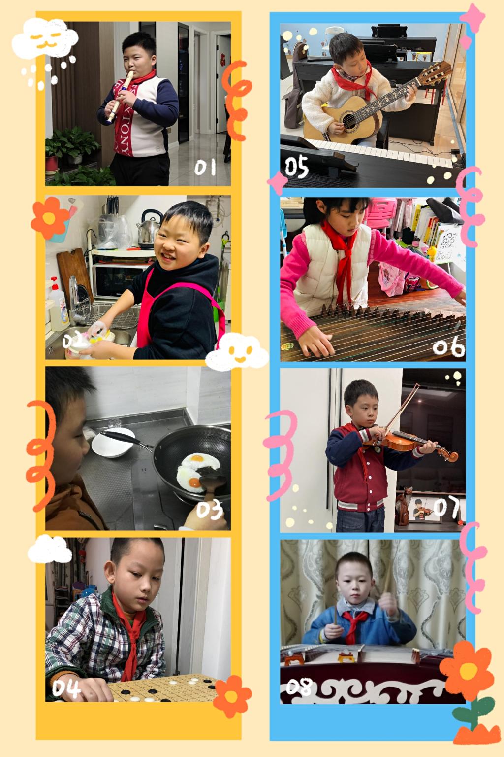 看,他们有的学着做家务,扫地、拖地、吸尘、洗菜、煎蛋、洗碗套垃圾袋;有的则是强化自己的艺体专长,练字、吹笛、弹琴、下棋......一个个都非常的积极认真,用自己的实际行动努力争当新时代好少年。
