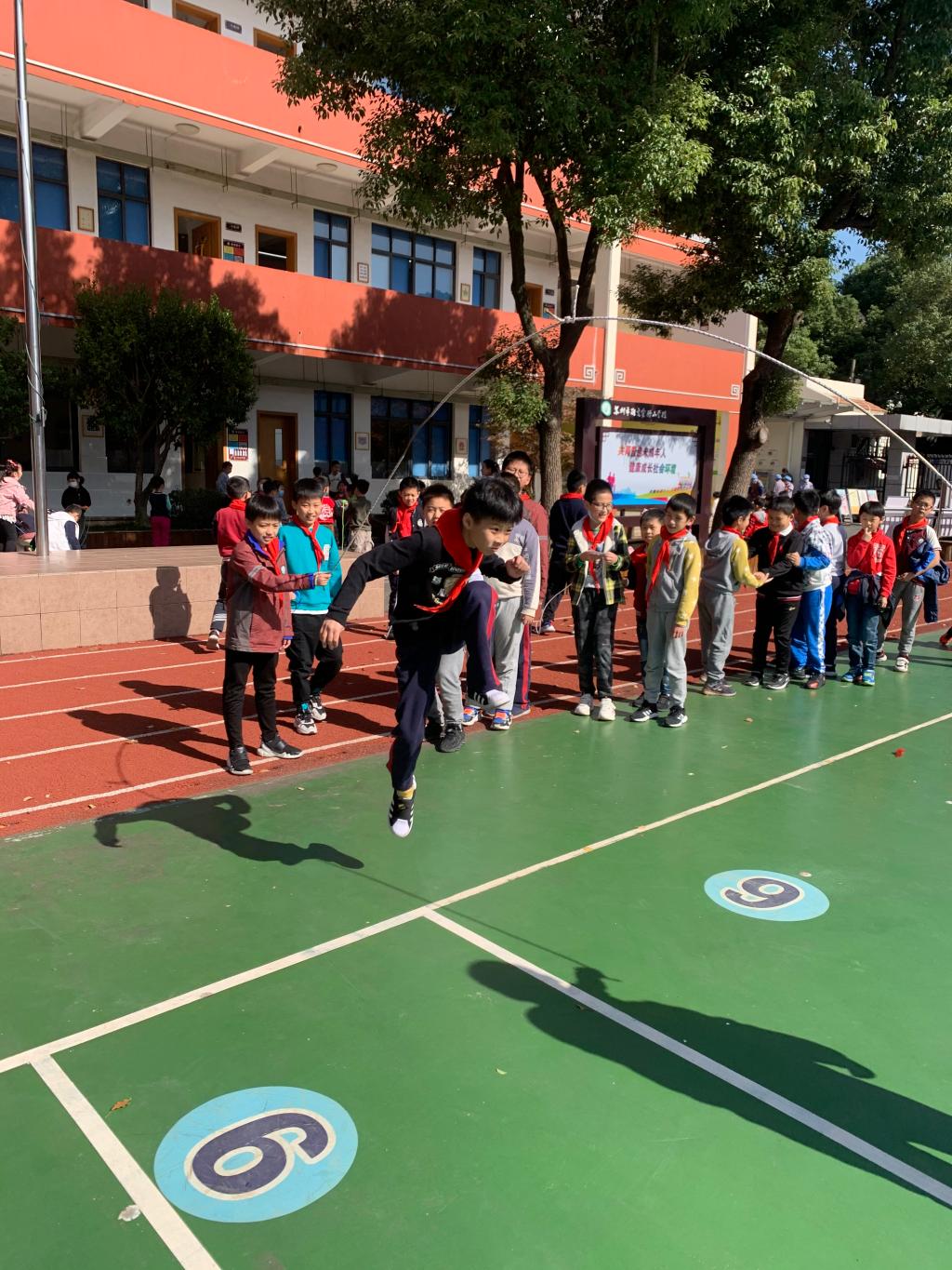 你看这边!彩色的毽子在空中翻飞;呼啦圈在飞速的旋转;各色的跳绳也在同学们的手中划出了一道道彩虹……耳畔不时传来“一、二、三、四……”的数数声……