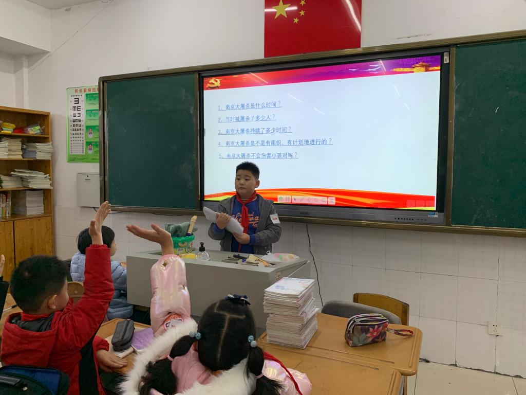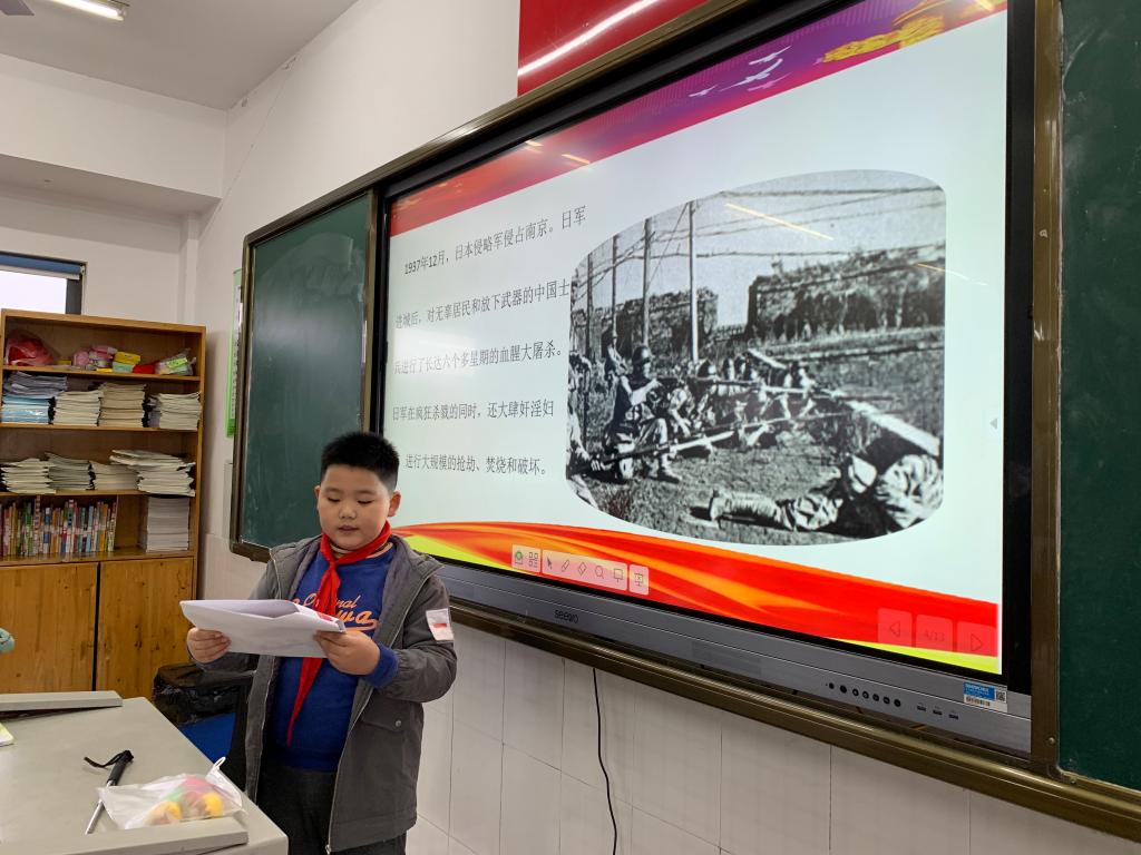 12月13日是南京大屠杀的纪念日,为了让孩子们牢记历史,我们的小干部马梓跃在本周给班级小朋友召开了《南京大屠杀纪念日》的班队课。在课上,马梓跃给小朋友讲述了南京大屠杀的历史,同学们听完后都震惊无比,同时,也激起了他们爱国护国的决心。相信通过此次班队,同学们一定能牢记此次历史,长大后更好地为保卫自己的祖国贡献自己的力量。