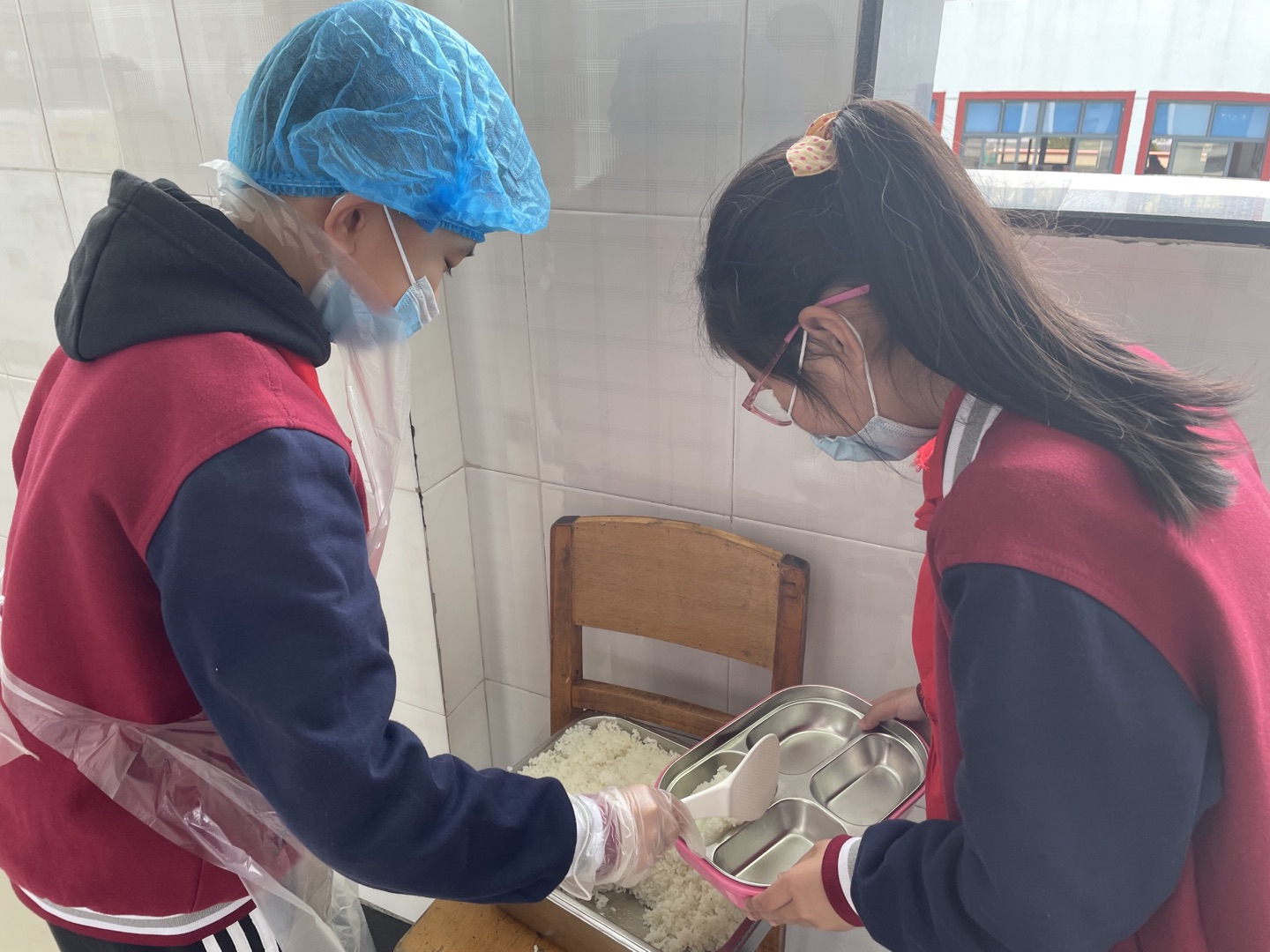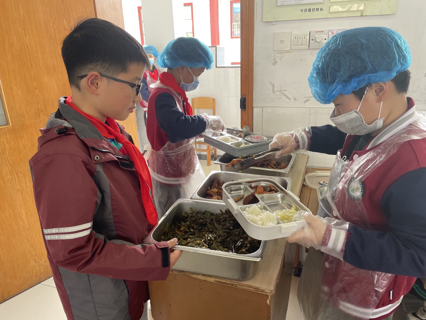 本学期,在学校的号召下,学生进行了自主分餐尝试。学校给每位负责分餐的同学准备了一次性帽子,手套,围兜,学生自己带好口罩,开始了工作。参照已经确定好的分工表,两位同学负责分餐,一位同学负责给大家盛饭。还有两位同学维持排队时的纪律以及班级的卫生。这些小助手们俨然一副小大人模样,分餐井然有序。同学们也都很配合小助手。希望同学们都能通过此次锻炼,感知劳动的辛苦,以及珍惜粮食的重要性。