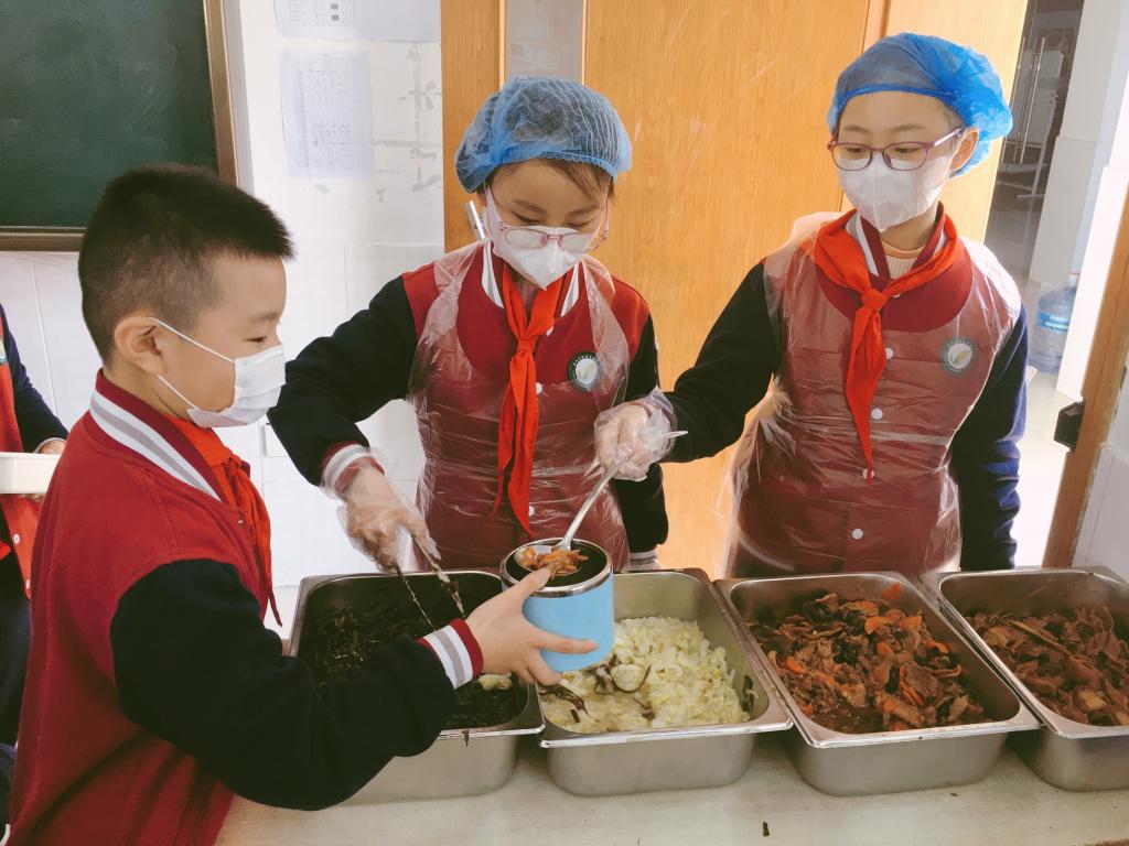 阳春三月,敬文校园内鸟语花香,一片生机勃勃的景象。中午11点20分,午餐时间到啦!我班的分餐小能手们华丽登场,瞧,他们迅速戴上口罩和帽子,系上围裙,套上一次性手套,有的拿起饭勺,有的手握汤勺,有的举起夹子,有的转动菜勺。虽然都只是十多岁的孩子,却个个神情庄重,手法娴熟,招呼同学们有序排队,手脚麻利地为大家服务,十五分钟下来,额头、鼻尖早已渗出细密的汗珠。作为三(1)班的班主任,我必须为这些可爱的分餐员们点赞,他们做得实在是太棒了!