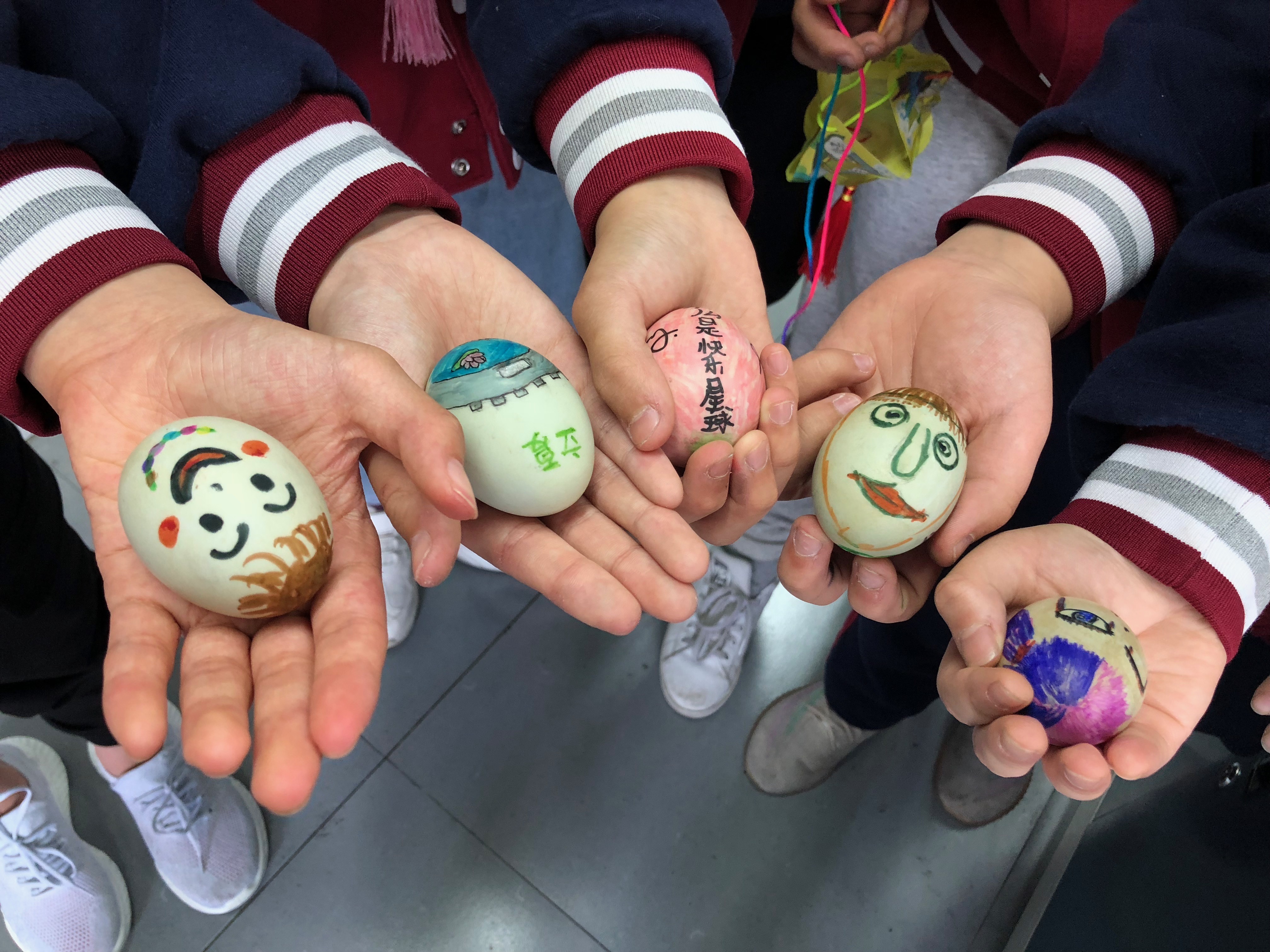 在立夏到来之际,学校组织了丰富的活动。手绘鸭蛋、自制网兜、斗蛋,无不都吸引着同学们。大家带来了彩笔,兴致勃勃地画上自己喜欢的画,并把绘制好的彩蛋放在网兜里,挂在胸前,别提有多高兴了!