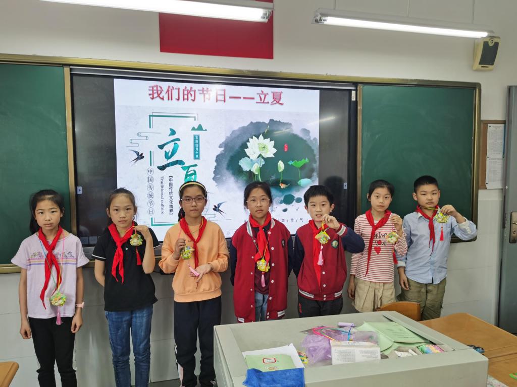 4月30日,班级开展了“立夏见三新,文化润童心”的主题活动中,老师结合苏州本地的风土人情讲授了“立夏”的习俗和故事,并指导学生完成网袋的制作,体验了“立夏挂蛋”“画蛋”“斗蛋”的民俗。在活动过程中,学生给咸鸭蛋的外壳画上形式各样的画:有美丽的荷花,五色的彩虹,熊猫的笑脸,还有的在蛋壳上面提写了一首诗歌。接下来进入最激烈的环节,老师让学生自主开展班级蛋王PK大赛,评选出班级的斗蛋大王,通过这一系列的活动,提高了学生对传统节日的了解,激发了学生浓浓的民族情。