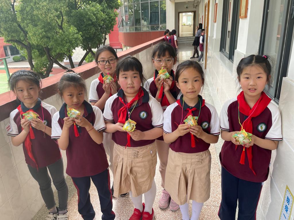 “立夏蛋,满街甩”,斗蛋通常是小孩子们的游戏。斗蛋要用煮鸡蛋,规则挺简单,就是“比比谁的蛋壳硬”:大家各自手持鸡蛋,尖者为头,圆处为尾,蛋头撞蛋头,蛋尾击蛋尾,一个一个斗过去,斗破了壳的,认输,然后把蛋吃掉,而最后留下的那个斗不破的小强,被尊为“蛋王”。二(2)班同学将自己带来的鸡蛋鸭蛋鹅蛋画上美丽的图案,挂在胸前。