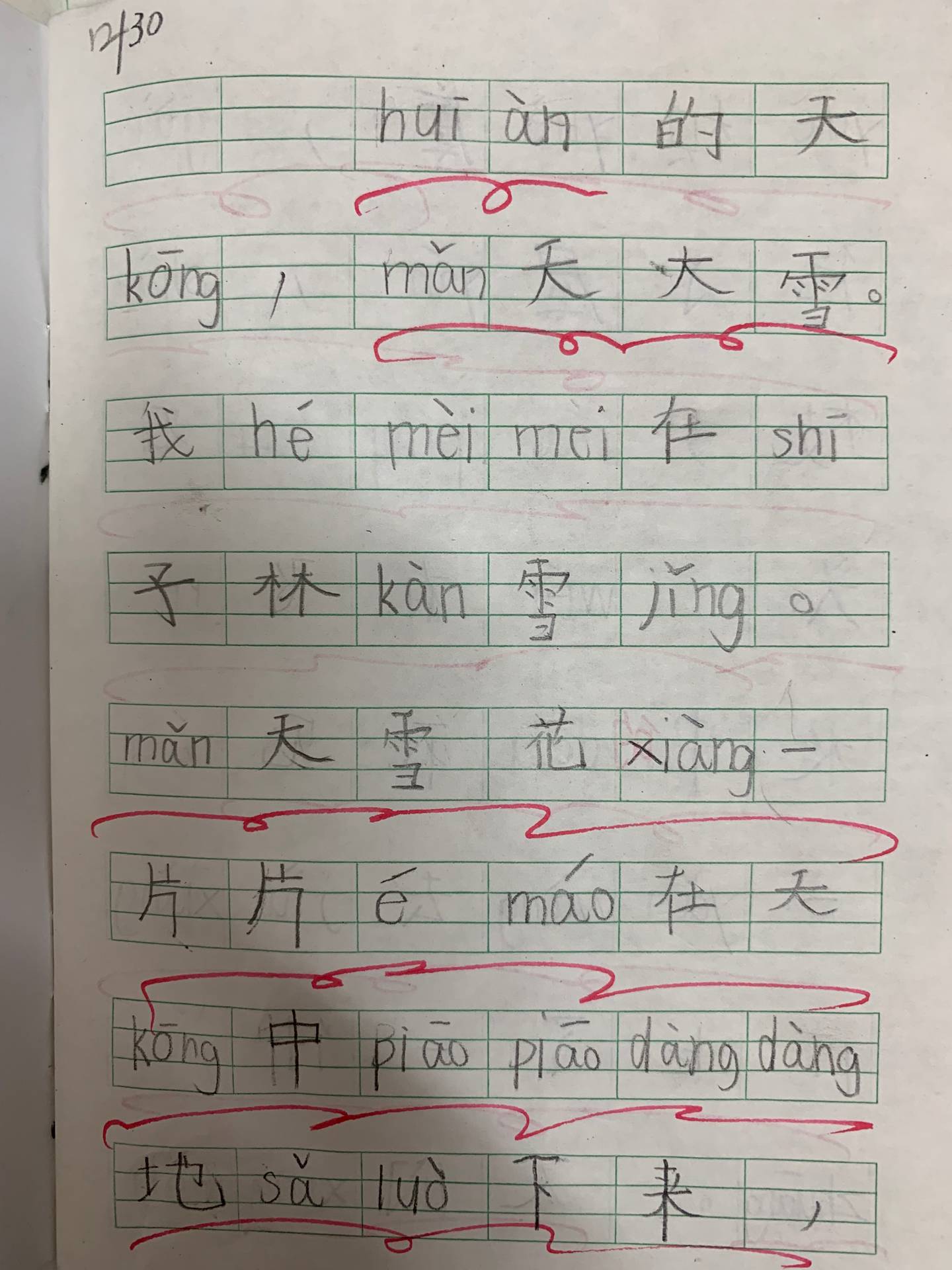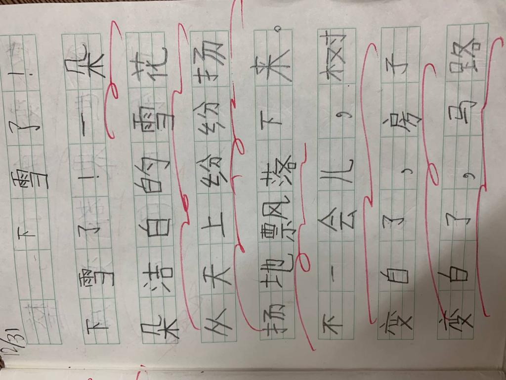 今年冬天的雪来的特别早,小朋友们已经欣赏到两次美丽的雪景了,都开心极了。在写话中,他们都纷纷表达出了对白雪的喜爱和赞美之情。