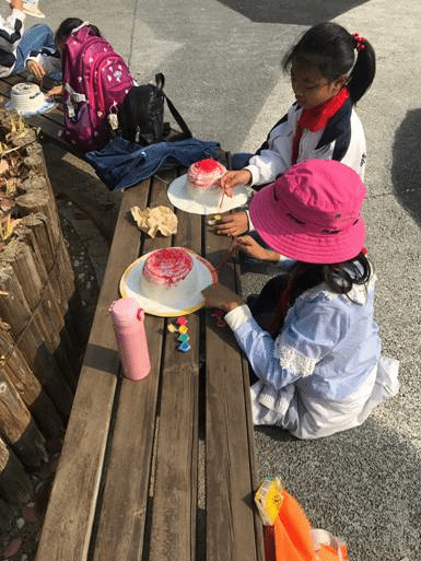 秋天社会实践活动中孩子把绚丽的秋色绘在草帽上,留下美好的回忆、