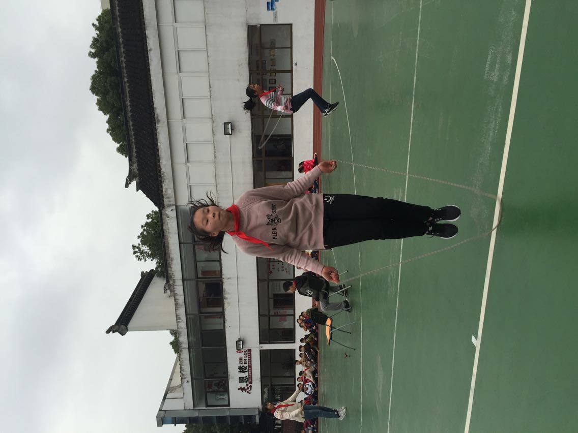 在校运动会上我班的陈苏苏同学参加了双飞比赛,只见她如闪电般地挥动着双臂,身轻如燕,快速地跳动着,好像永远不知疲倦一样,最后,她以最好的成绩获得了年级第一的好成绩,同学们都特别高兴,为有这样的同学感到骄傲。