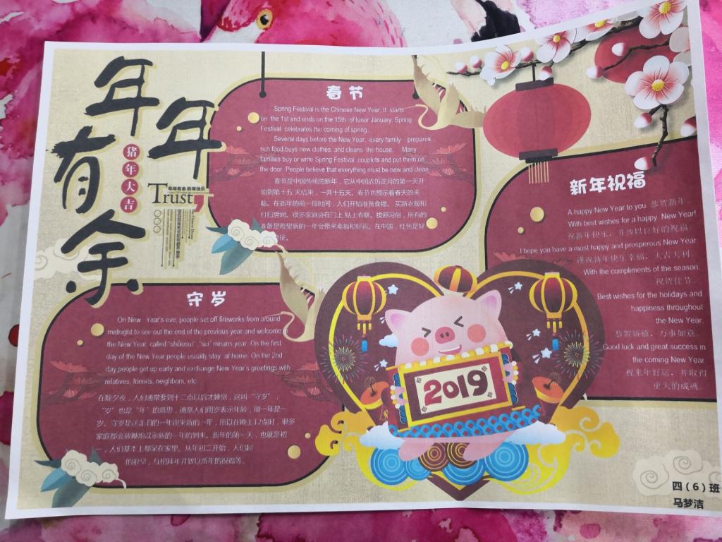 我们的孩子们也度过了愉快的新年和寒假,也通过我们的画报形式展示了他们愉快的寒假生活,像我们展示了他们的Spring Festival,形式各样,五彩缤纷,各有特色,让我们一起来欣赏下吧!