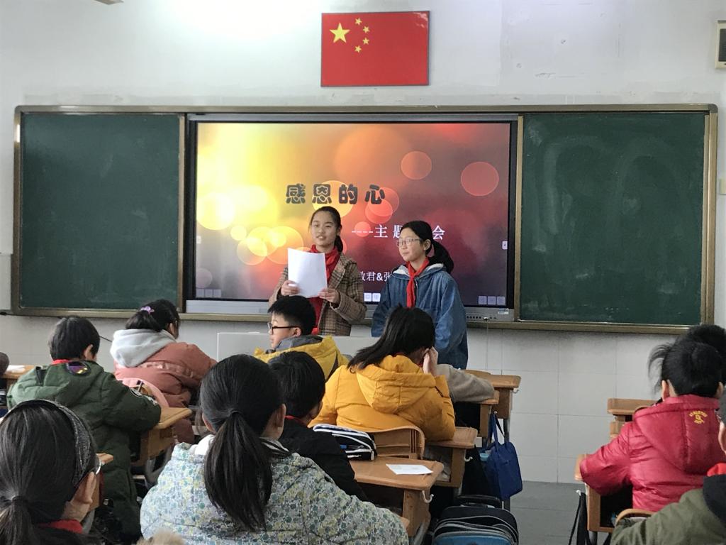 开学了,六三班同学开展了第一次班会活动,题为《感恩的心》。张敏君和张镯同学组织了这次班会活动,同学们踊跃发言,积极参与,为感恩父母感恩老师建言。