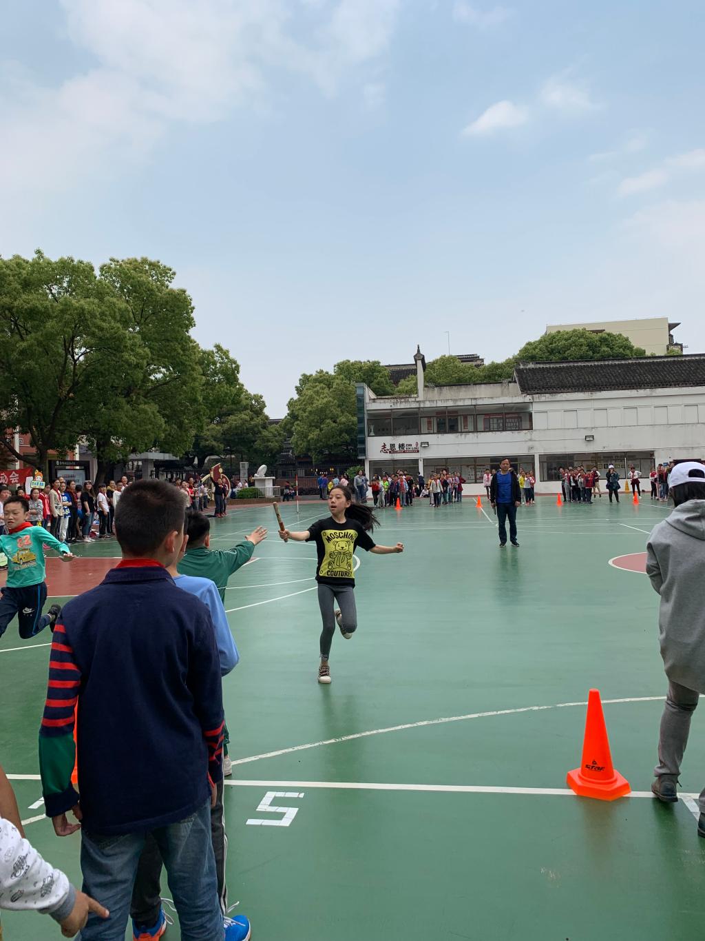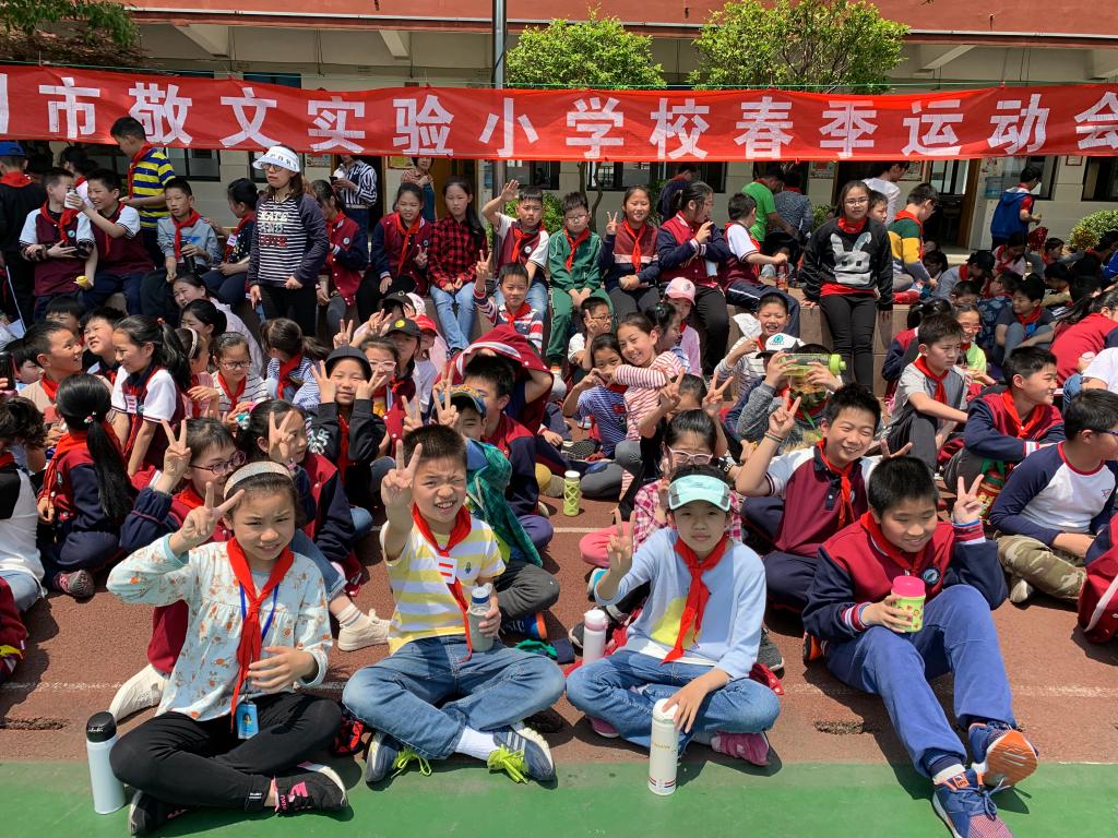 5月9日中午全校运动会开始了。同学们集中大操场,观看比赛。