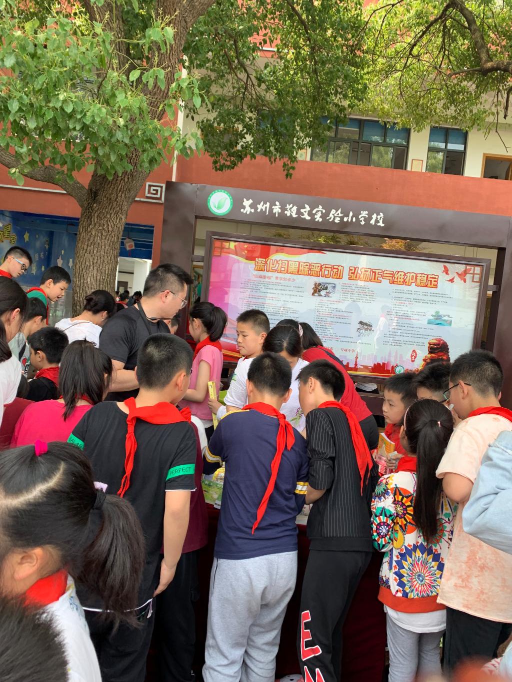 操场上各个班级摆着摊位,只听大家吆喝着:“大家快来看呀,这儿有好多新奇好玩的东西,快来买呀!”比外面的市场还要热闹。