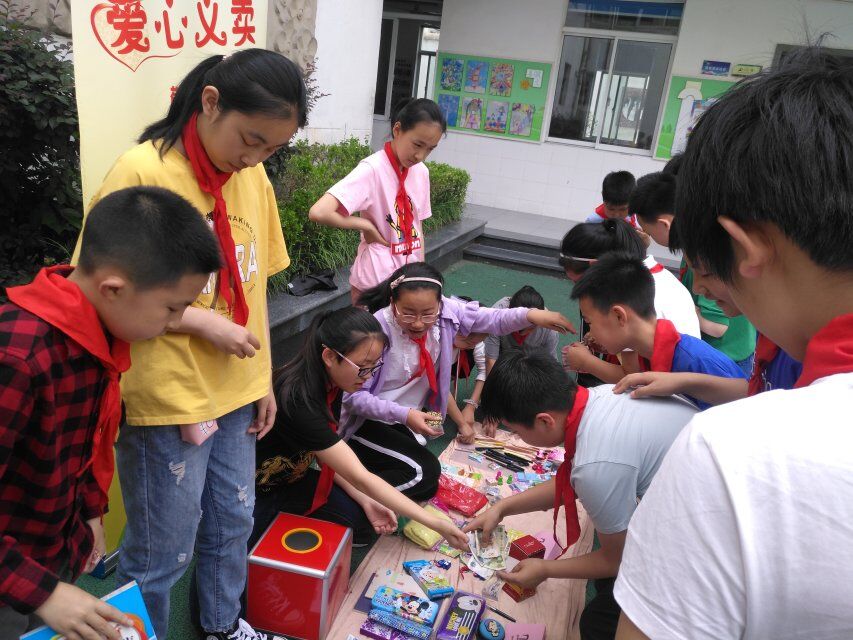六.一前后,为响应学校大队部号召,同学们纷纷带来了自己心爱的课外书籍,慷慨捐献给贵州江口小学的小伙伴们,与他们分享图书,分享故事,分享人间真情;另外,同学们还带来了许多学习用品、手工作品、益智玩具等,做好了充分的前期准备,开展了义卖活动,共计筹得爱心善款604元,用以帮助身边有困难的小伙伴和江口的贫困儿童,着实过上了小学阶段最后一个有意义的“六一国际儿童节”。