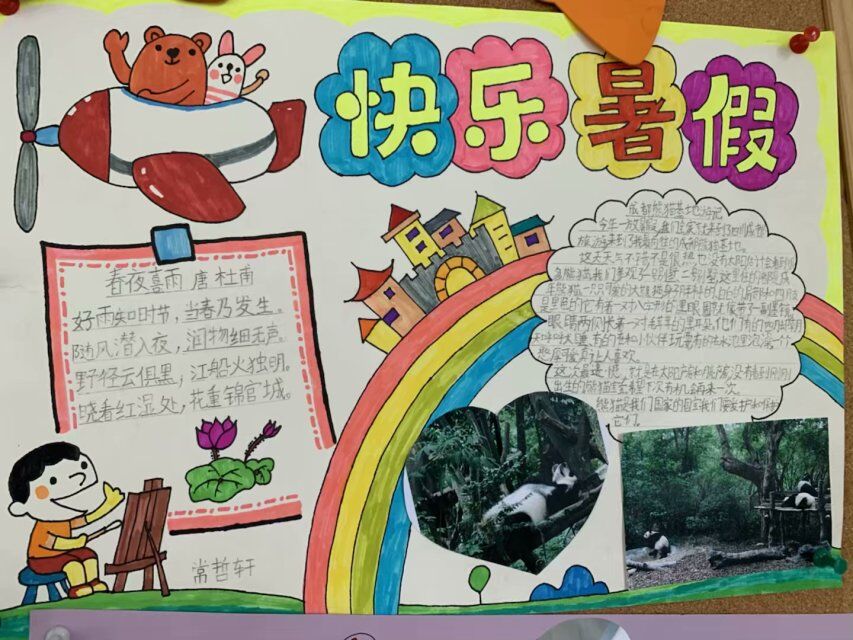 开学啦,小朋友们交来了在假期里精心制作的暑假作业。数学暑假作业有让学生去逛接买东西,并且记录东西的价格,做到了让学生亲自动手实践体验。英语重在对旧知的巩固,朗读,阅读成为习惯。语文的作业是制作一张暑假的小报。小朋友们充分利用暑假的时间,外出增长见识,然后,把暑假所见所闻写了下来,并且添加照片和图片制作成了精美的小报,和大家分享。看,多美呀!