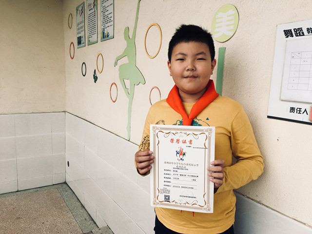 今天周文隆获得了奖状一张,他在“苏州市中小学生综合素质展示季系列活动”中获得了“2019年最强大脑中小学生数独比赛小学乙组二等奖”。周文隆是学校数独社团的成员之一,平时积极参加训练,锻炼大脑,终于功夫不负有心人,获得了市级比赛的奖项,让我们向他表示祝贺,并祝愿他今后再创佳绩,继续为学校争光。