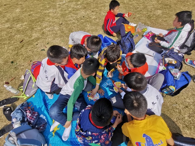 接着我们来到空草坪上休息,大家分享着自己从家里带来的美食,一起玩着游戏,孩子们的笑脸就像一朵朵绽放的花儿那么鲜艳,那么美好!