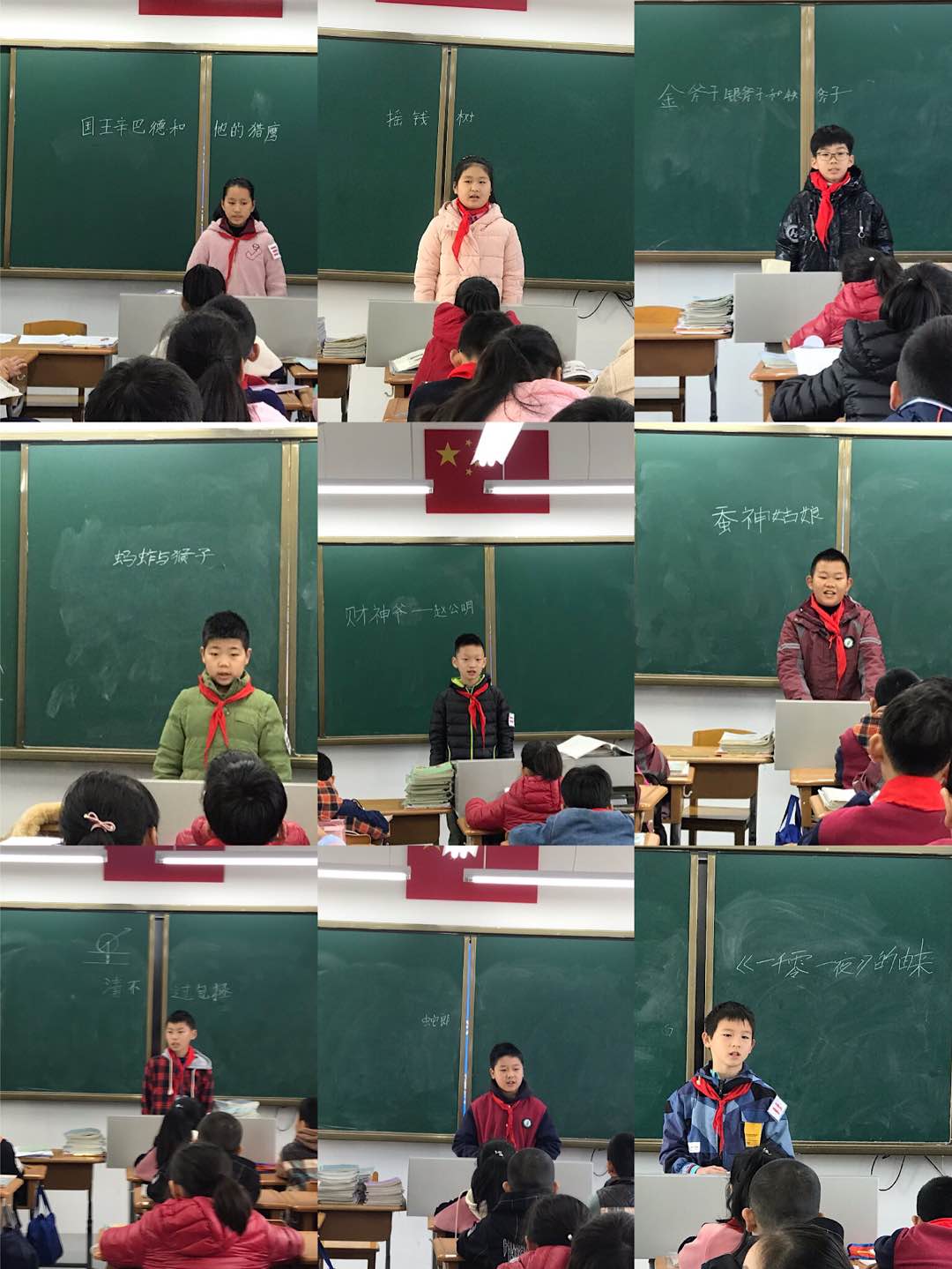 11月起,我们班充分利用课前三分钟,让每个同学得到自我展示的机会。第一轮我们定的主题是“中外民间传说”。虽然有些同学是第一次上台,但是每位同学都经过了精心的准备,上台不怯场,口齿清楚,故事讲述完整。只是同学们太注重背诵部分,还不能做到游刃有余,绘声绘色。