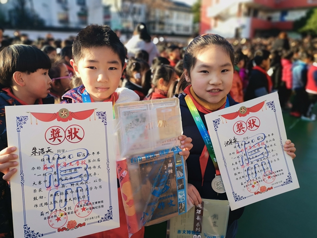 瞧,孩子们开心的笑脸比鲜花还要美丽!是什么事情让他们如此高兴呢,原来是他们获奖了。我们全班同学参加了小荷作文当场大赛,有35位同学获奖了。本次作文大赛是当场写的,真实展现了同学们的写作实力,经过激烈的角逐,我们班有35位同学取得了可喜的成绩。其中朱浩天、沈采奕同学获得了特等奖,33位同学分别荣获一等奖、二等奖、三等奖等奖项,你看,同学们手里拿着一张张奖状,笑得多么甜蜜啊!再次祝贺同学们,相信你们会越来越棒的!