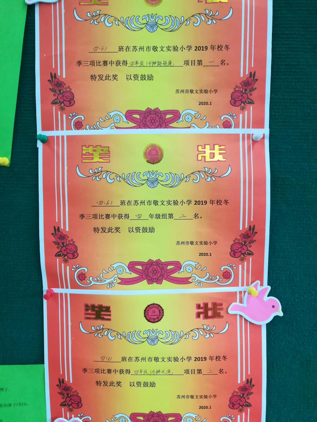 新的一年,新的气象。在全校冬季三跳比赛中,我们班凭借日常刻苦训练,获得了短绳组第一名,长绳组第二名的好成绩,最终我们位列总分第二名。同学们表示:今后要继续努力,争取下次比赛获得更优异的成绩!