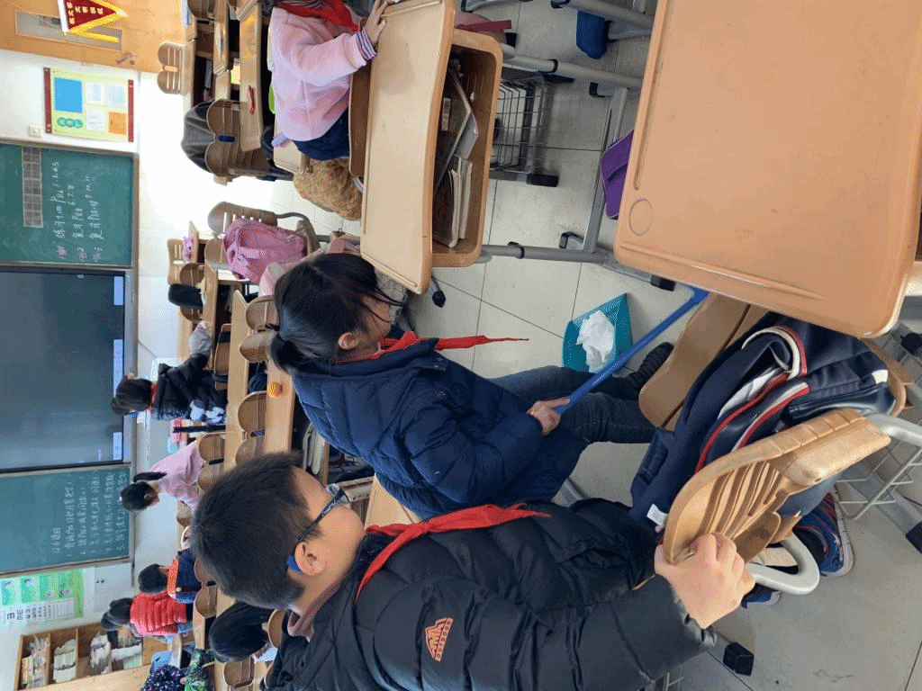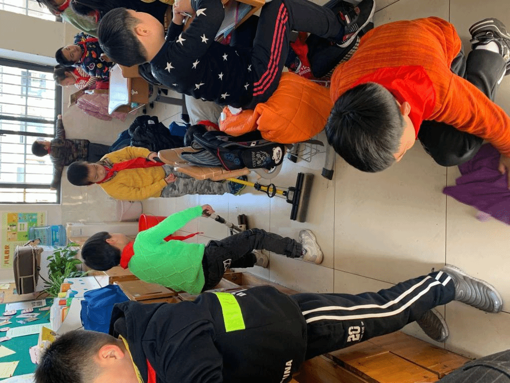 在整个劳动过程中,同学们分工明确,团结合作,干得热火朝天!瞧!孩子们认真扫地拖地、叠窗帘、整理班上的小柜子、图书角、擦拭门窗玻璃灰尘等。他们不怕脏不怕累,干劲十足,每一个孩子都表现得很棒!