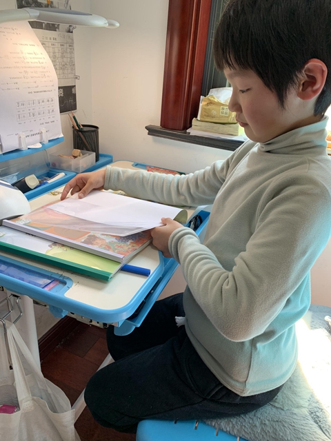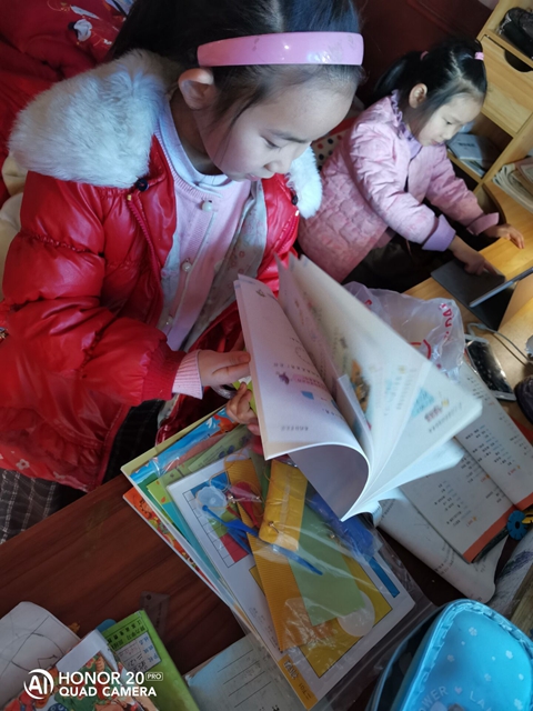 “停课不停学”,疫情期间,我们同学们都乖乖待在家中,各自开展自学活动。3月14日,在这漫长的寒假中我们终于拿到了新书!昨天,老师们早早来到学校,打包分装好每一个同学的书本,今天爸爸妈妈们做好防护,分批来到学校,经过了门口体温检测,查看苏城码,“一米”排队,核对书目,签字确认,最后新书被爸爸妈妈“领”回家,送到我们每个同学的手中。这一本本书散发着油墨香气,蕴含着老师的爱心。同学们拿到书激动极了,有的连忙拿出早就准备好的书皮,给新书穿好“衣服;有的翻动新书听听翻书的唰唰声;有的已经迫不及待地放声朗读起来了……瞧,这是我们同学们拿到书的样子。