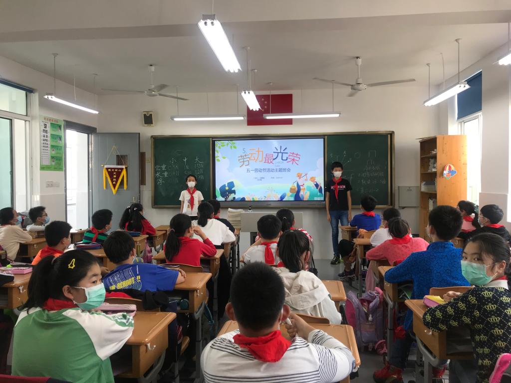 4月29日,五(6)班全体同学,开展了《爱劳动,爱生活》主题班会。同学们在班会中,重温了在生活中劳动的快乐,也设身处地地体谅了身边各种职业的劳动者的辛苦,重塑了对劳动者的崇敬之情。特别是在尾声部分,在激烈的抢答环节后,同学们谈了对于本次班会的切身感受。