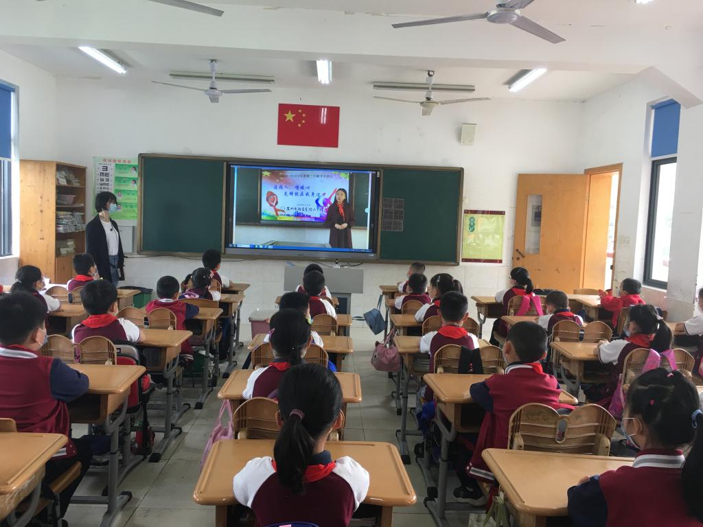 5月11日,终于迎来了二年级复学的日子。孩子们一个个穿着校服,戴着口罩,背着书包,在学校门口排队测体温,有序进教室,口罩遮挡不住他们微笑的脸庞,鲜艳的红领巾在胸前显得格外耀眼。晨会课8:20分开始,在庄严的国歌声中,小朋友们全体起立、敬礼,大声地、充满激情地唱起了国歌,之后认真地观看由大队辅导员陈老师主持的开学典礼。大家在回顾疫情中展望开学的美好,感动、激动之情溢于言表,在心中生根。