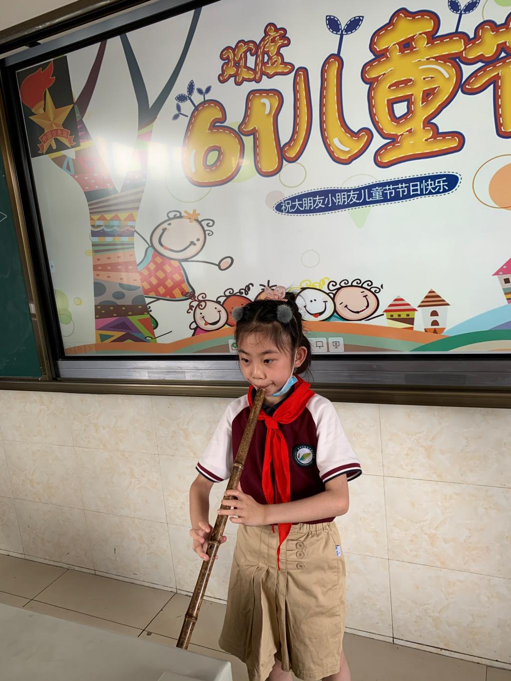 2020年,是不寻常的一年,而今年的六一,却同样是个值得开心的日子——儿童节。这天下午,孩子纷纷带来了自己喜欢吃的食物,与同学们分享,大家其乐融融。班级有才艺的同学,也跃跃欲试,上台展示了自己的风采:有古诗朗诵,歌曲联唱,街舞表演,讲故事,猜谜语,最吸引人注意的是袁梦涵同学的洞箫演奏《龙的传人》,赢得了大家的阵阵掌声。