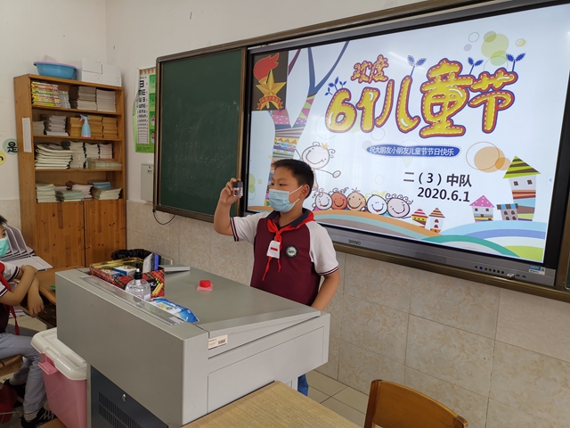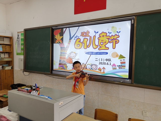 “哇——”一阵欢呼声从二(3)班教室里传出来,是什么事情让大家这么激动啊?原来班级里正在开展庆祝六一活动呢!今天是6月1日,是小朋友们的节日。大家正在班级里庆祝活动,瞧,第一个上台的是钱程同学,他为同学们表演了神奇的魔术。接下来同学们各展所长,有的唱歌,有的跳舞,有的拉琴。同学们精彩的表扬得到了大家的掌声。