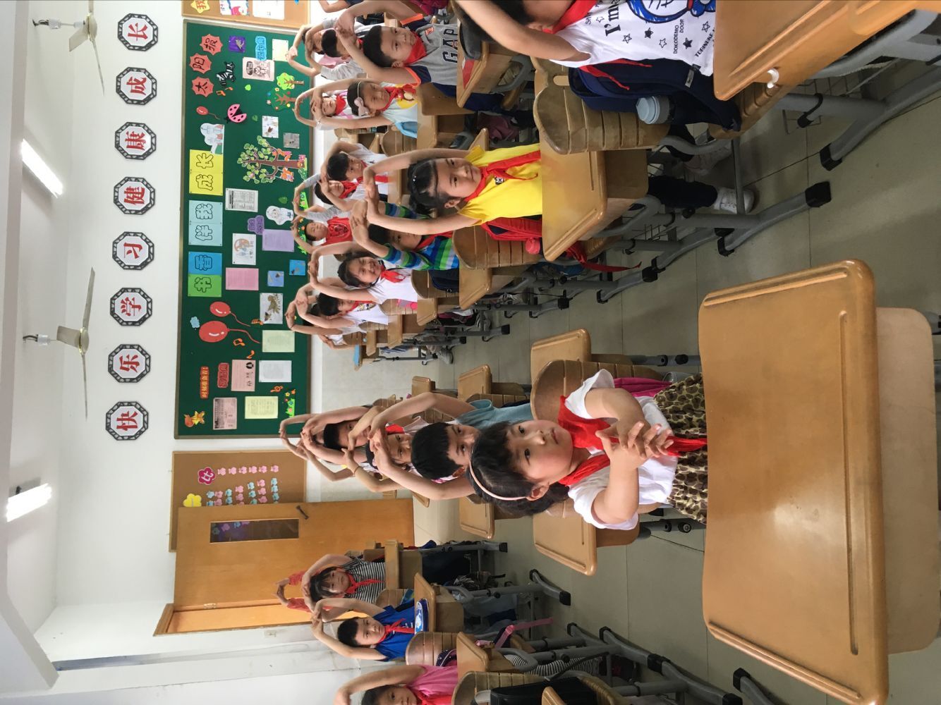 在紧张的学习之余,小朋友们跟着视频学做课间操。放松放松肩膀,动动身体,小朋友们兴趣盎然。他们认真地学着,动作整齐划一。在安静的休息后,又回归到学习的节奏中去。