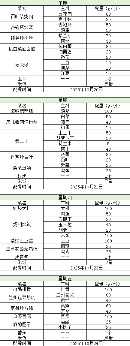 每周菜单