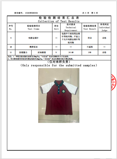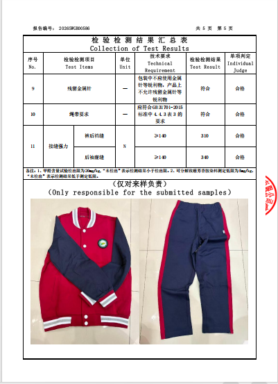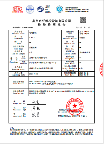 苏州市敬文实验小学校2025年秋季校服二次送检成衣质量检验检测报告公示